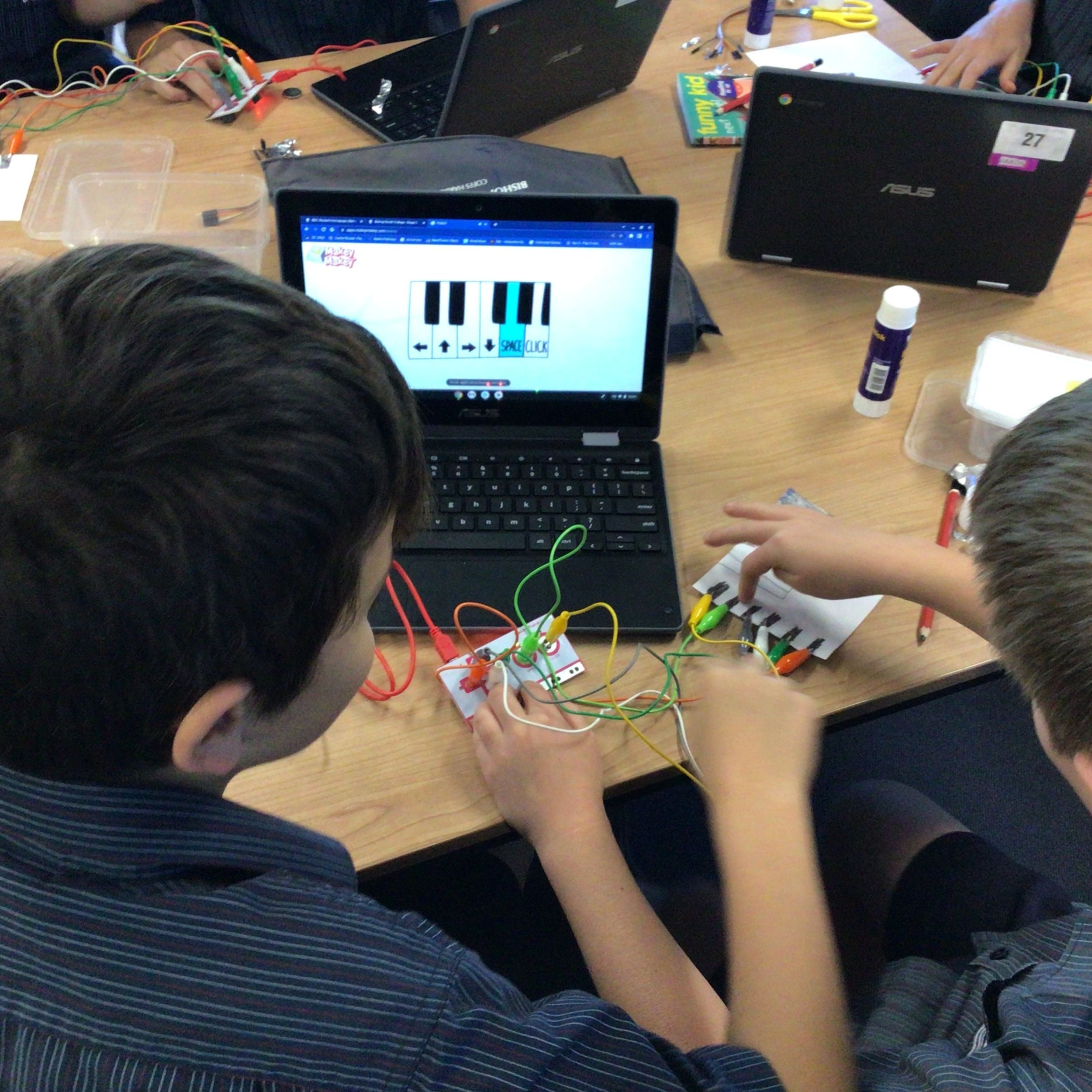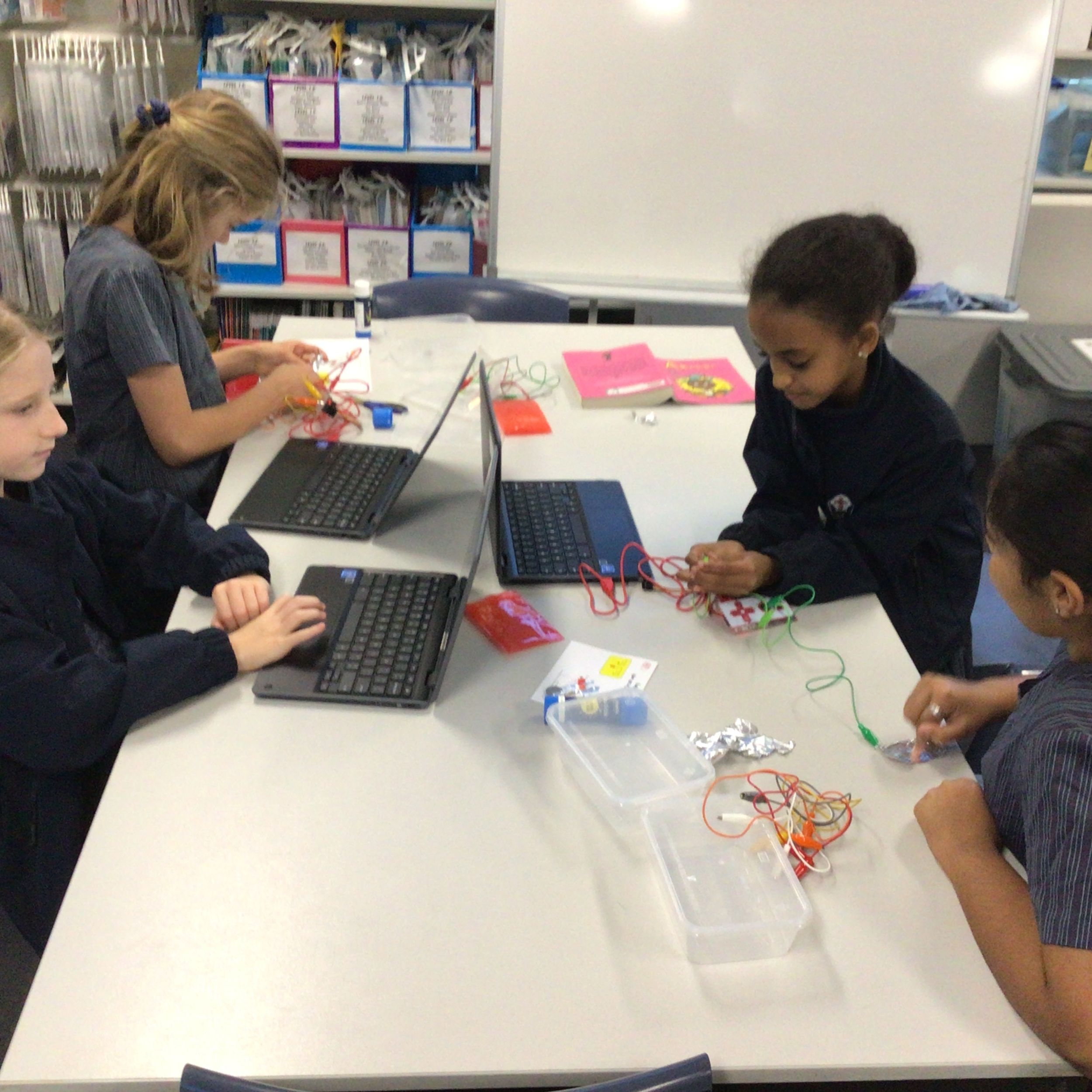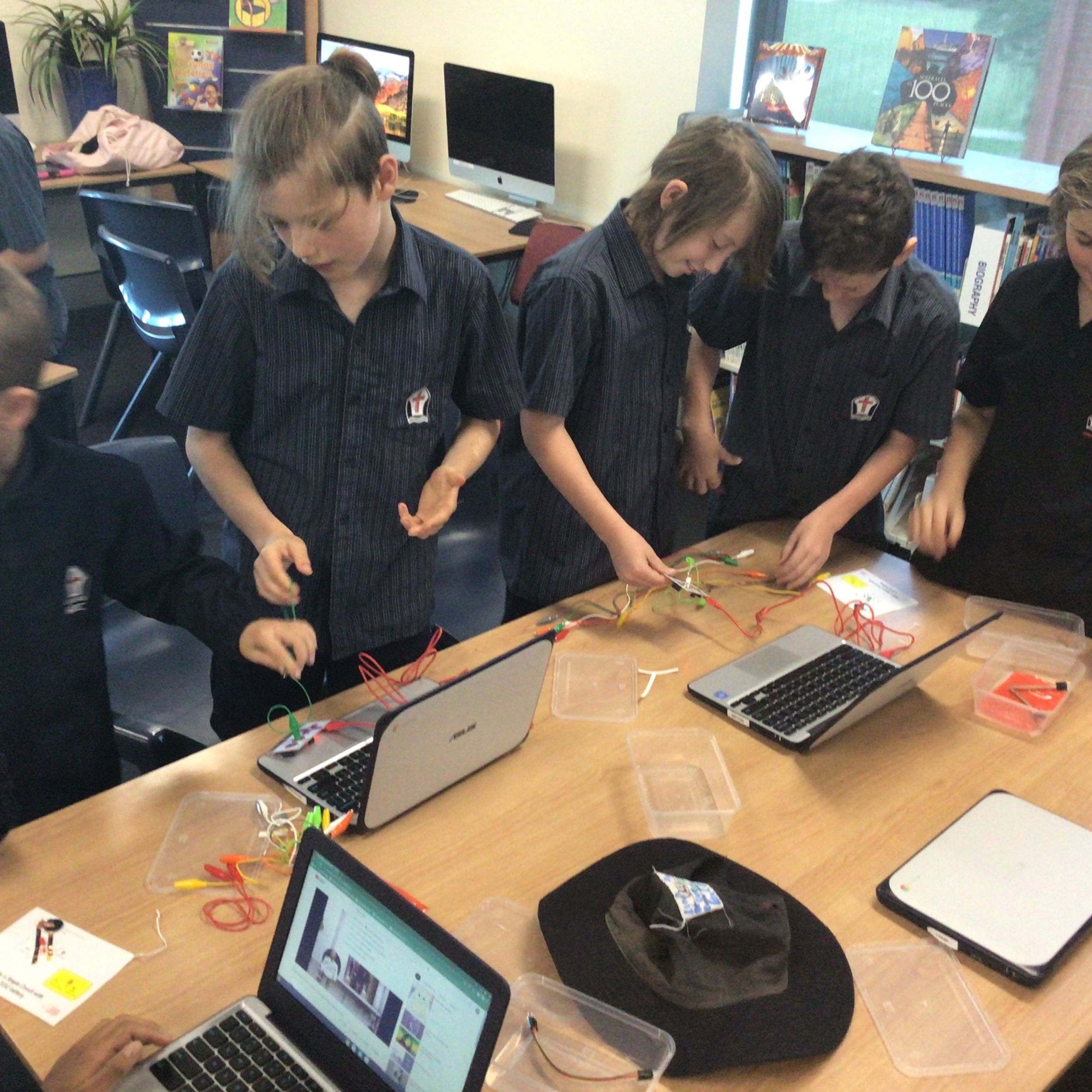 Stage 3: In Stage 3, students have been learning about energy transformations and circuits as part of their Science unit and spent the first part of the term consolidating their research skills from term one by locating, sorting and recording relevant information about a renewable energy source of their choice. We found it really interesting to look at live energy data across the Australian energy market and what technologies could be on the horizon. Following our research skills phase, students have now embarked on a mini STEM project using Makey Makeys. Makey Makeys allow the students to engineer their own circuits using anything they can find, even drawing citrus and interfaces to work with computer programs and games! As you can see from the pictures, there is some serious tinkering in progress!