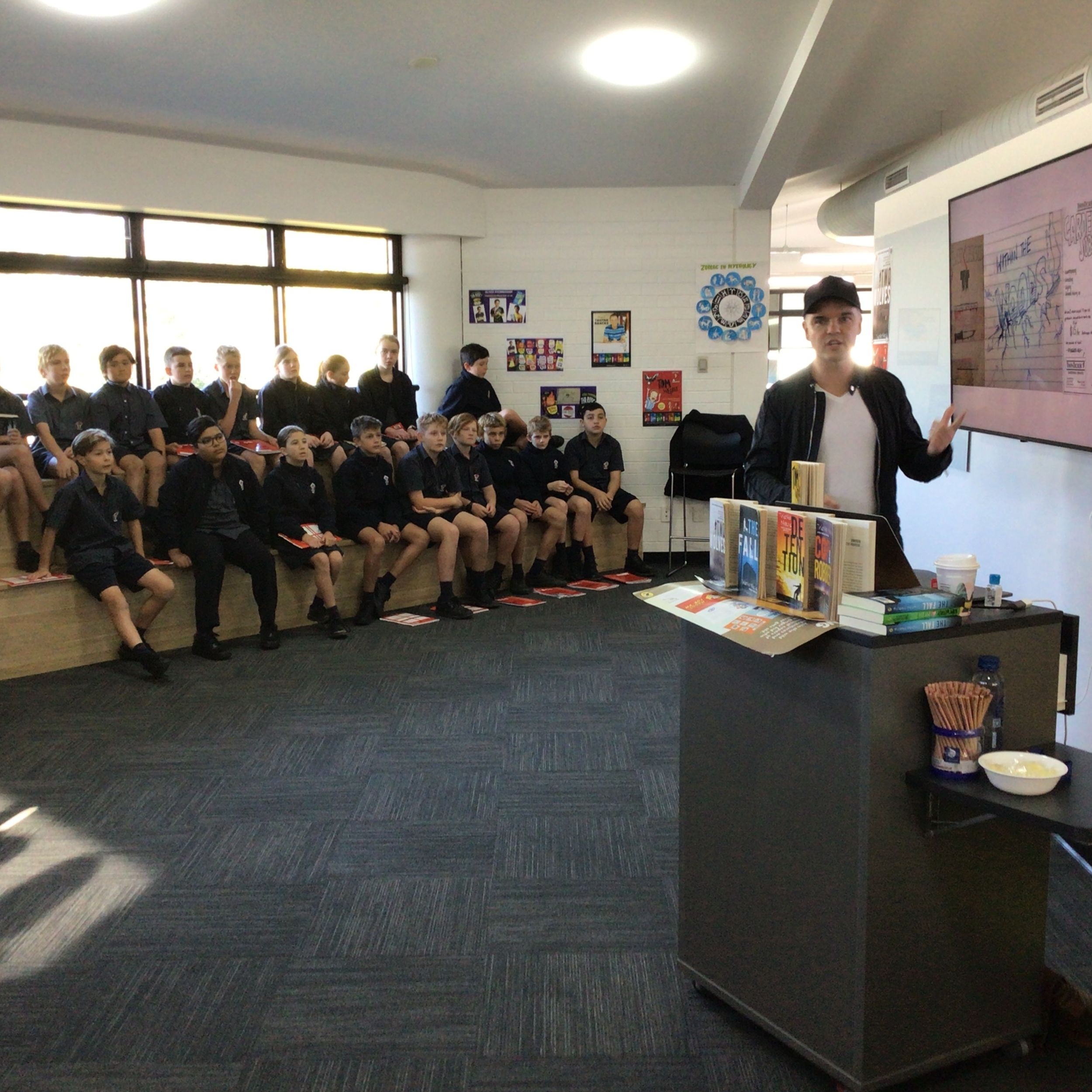 Tristan Bancks tells stories for the page and screen. His books for kids and teens include Two Wolves, The Fall, Detention, the Tom Weekly series, and Nit Boy. As part of their Talk4Write units of works, Stage 3 have been using a range of Tristan’s books for inspiration as they include magnificent stories of adventure, companionship, deceit and mystery. Tristan spent the whole day with Stage 3 classes and treated them to a writer’s workshop as well as discussion about how his ideas for his books came about and some of the interesting techniques he uses to inspire his writing.