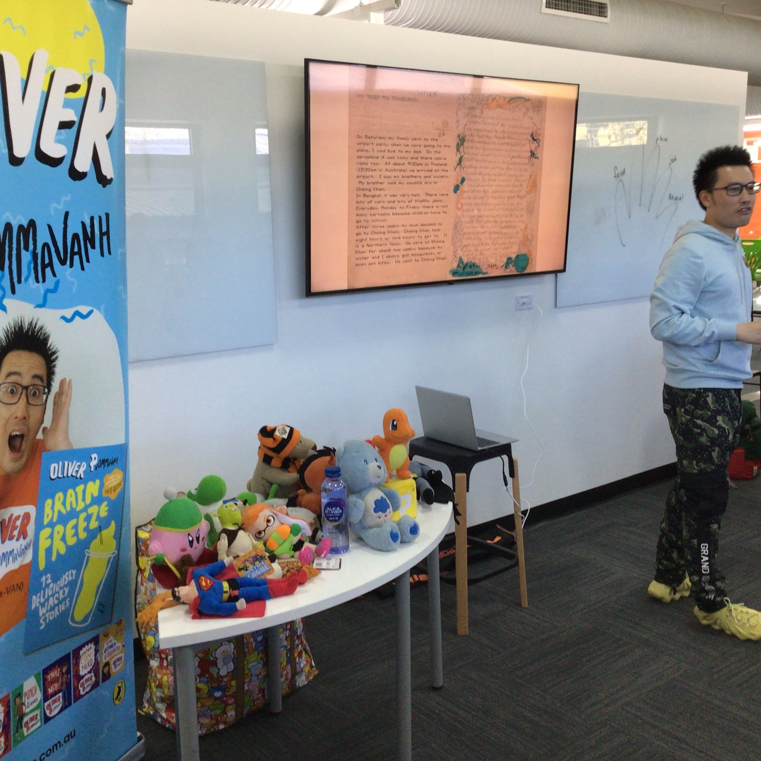Oliver Phommavanh who is a former teacher, now stand-up comedian and children’s writer. He conducted an author visit for all Stage 2 students as part of the Bellingen Readers & Writers Festival, Schools Program. Oliver included an entertaining presentation about his popular books and techniques on how to come up with jokes, weird characters, and wacky storylines, which was a big hit for students of Stage 2.