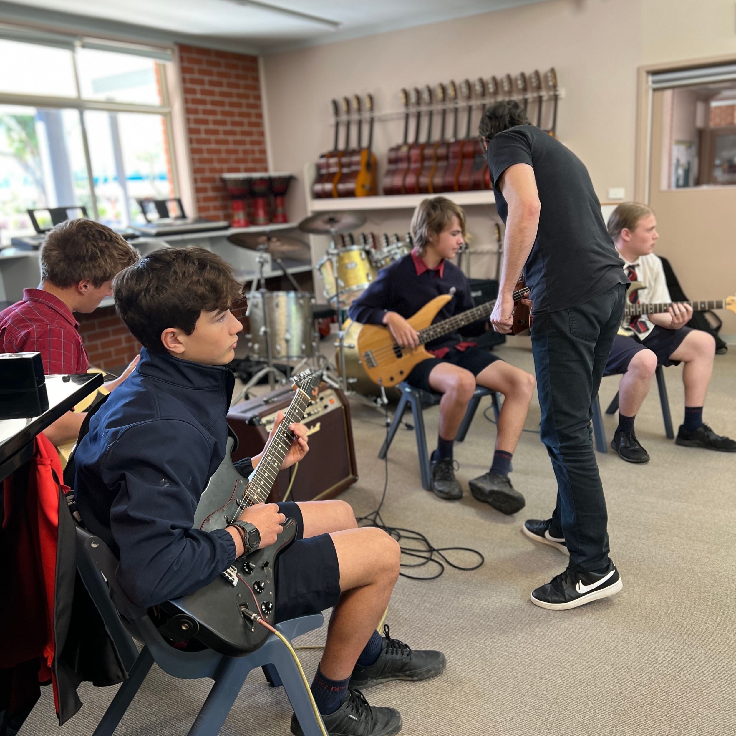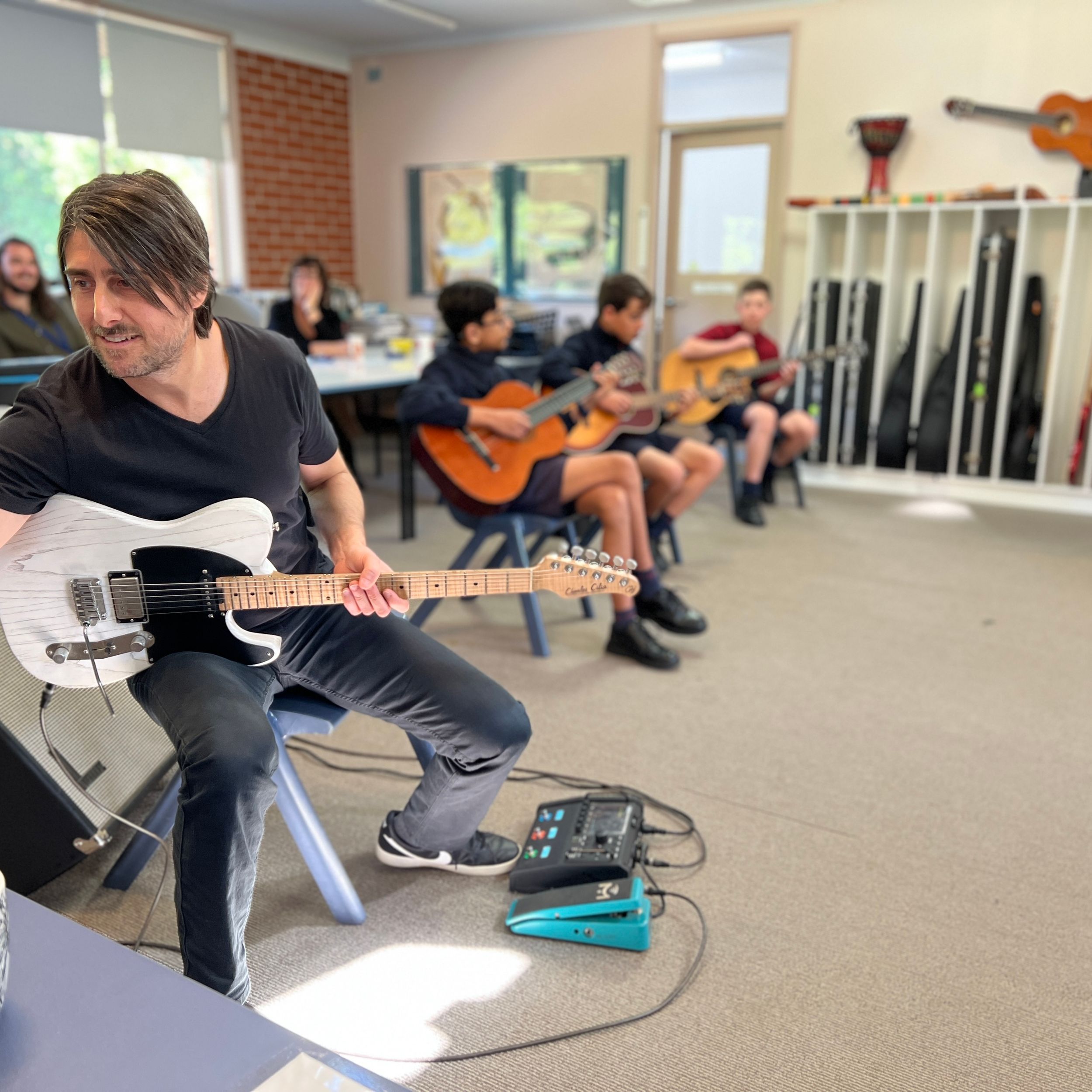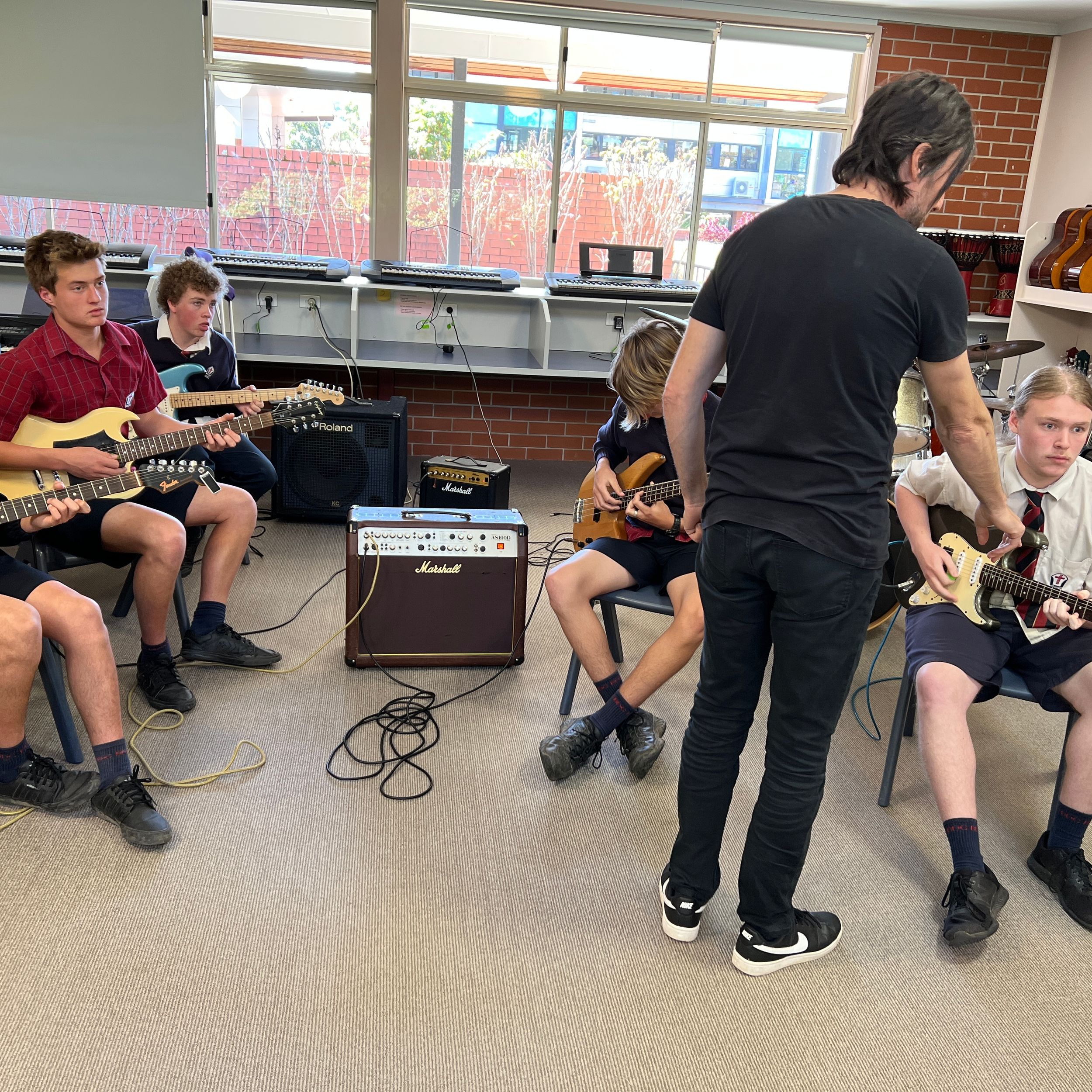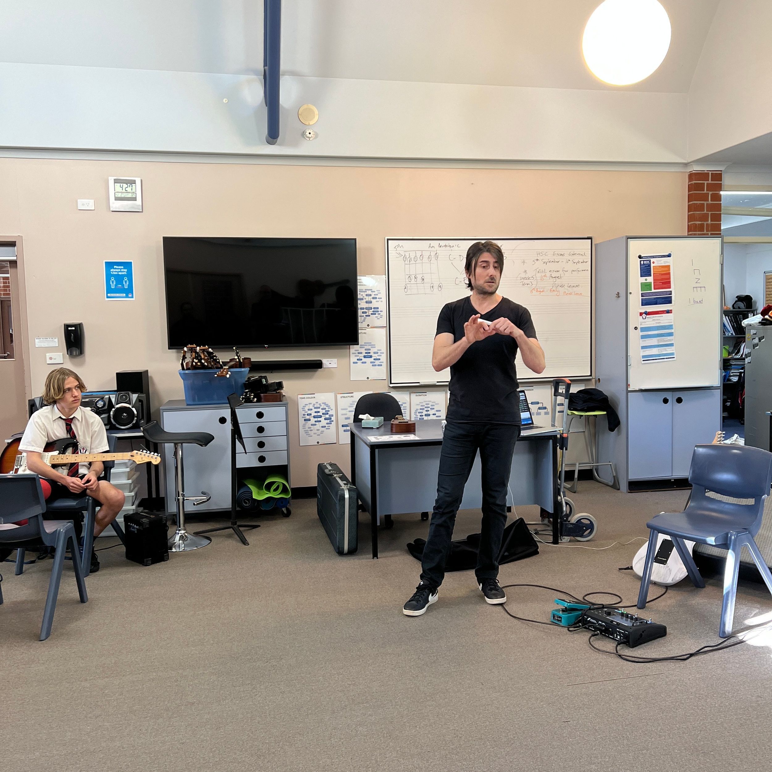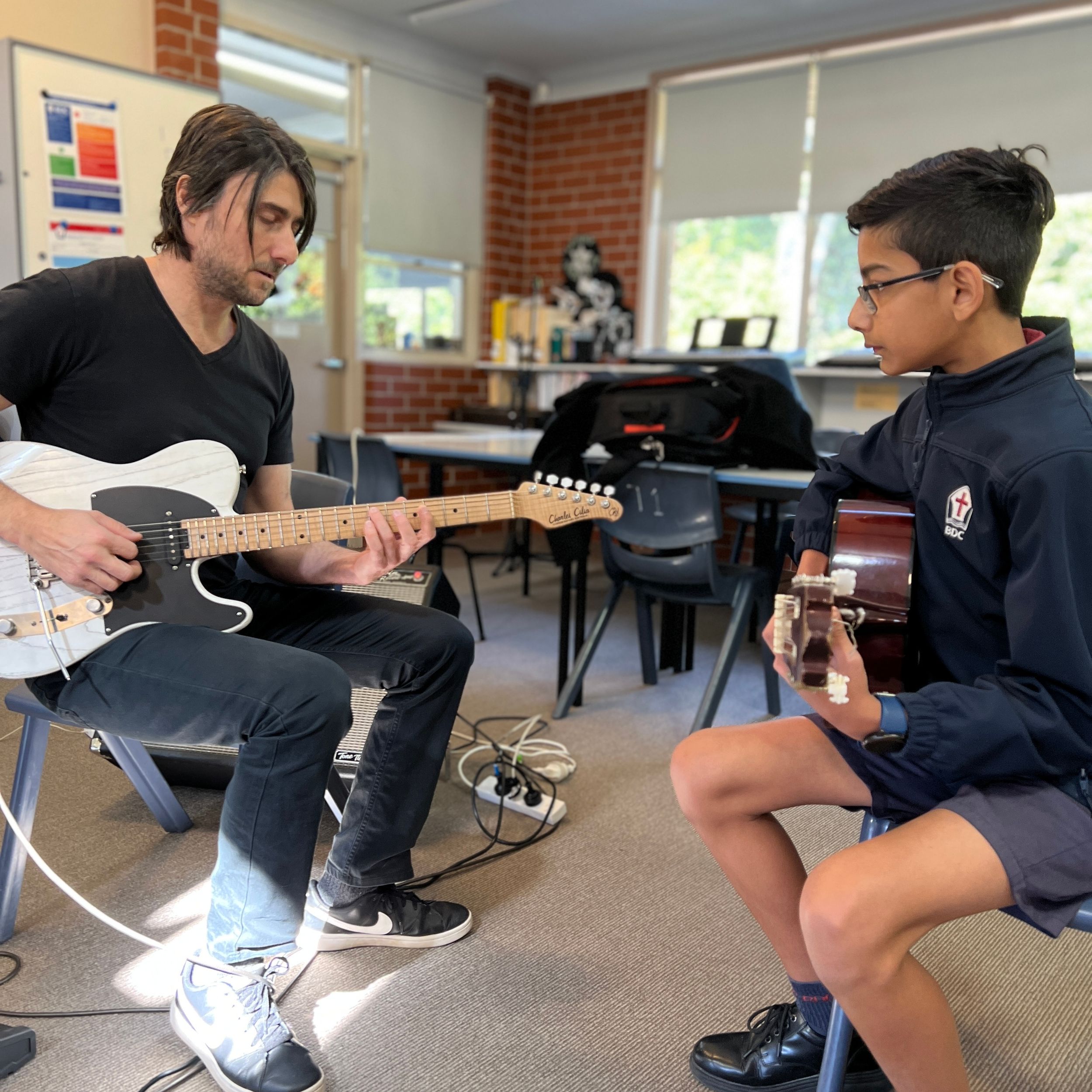 BDC was very fortunate to have Michael Dolce visit BDC for a Q&A session with music students and a guitar masterclass for selected guitarists on Thursday 28th July. Michael is the house guitarist on the tv show, The Voice and has played with artists such as Delta Goodrem, Keith Urban, Jessica Mauboy, Lionel Richie, Seal, Natalie Bassingthwaite and many more. Michael shared his journey with the students and encouraged them to always pursue their dreams and not to let anything stop them in their path. He spoke about taking initiative to create opportunities, practice daily, have a great attitude and expect to get a lot of knockbacks in the music industry. He was impressed with the students at the college and would love to revisit again in the future.