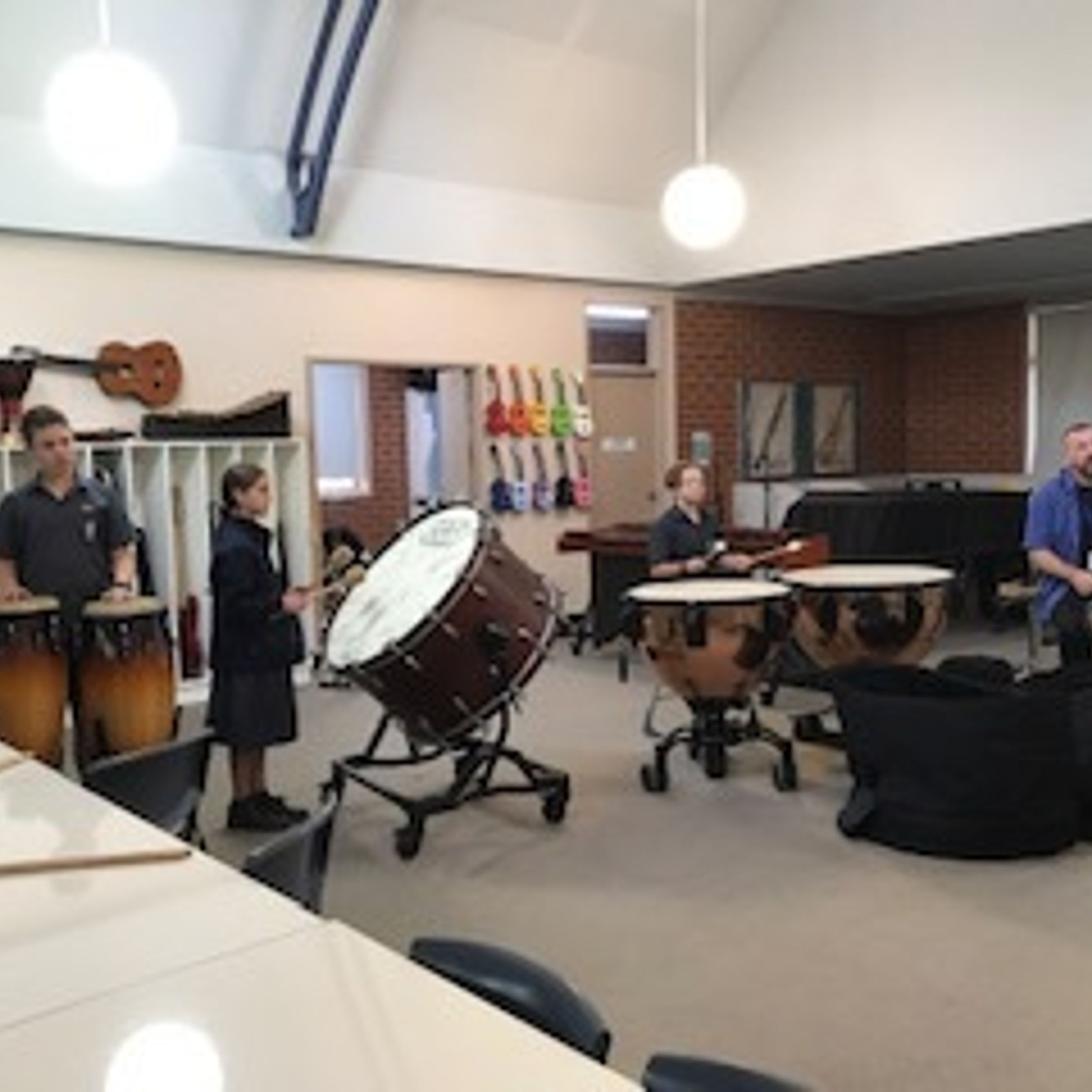 This year, our percussion students have expanded their skills and with Pete Skelton (our percussion teacher) formed two percussion ensembles - one primary and one secondary. The students have been learning how to play a range of large percussion instruments including timpani, bass drum and our newly purchased marimba. They are all thoroughly enjoying the group. New students are definitely welcome to join.