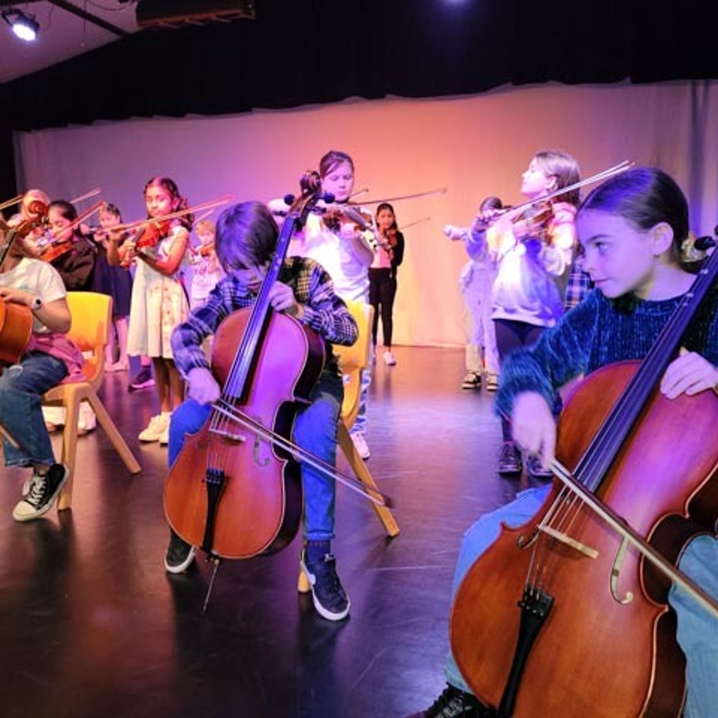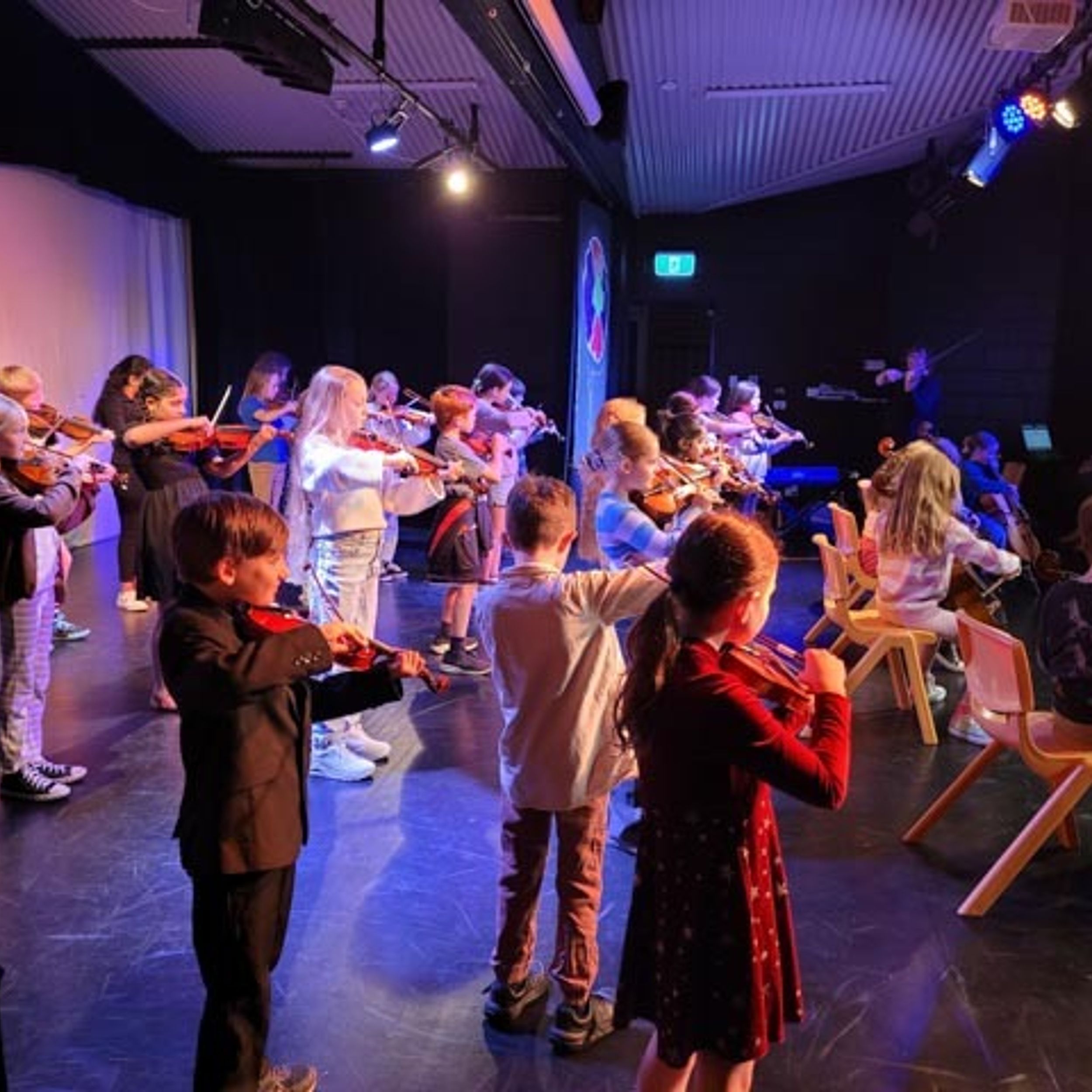 On Monday afternoon, Sandra Smith held the Semester 1 Year 3 strings concert. The concert was held in the Theatre and was an opportunity for students in Year 3 who were learning violin or cello in Semester 1 to perform in a concert to their parents, showcasing what they have learned.