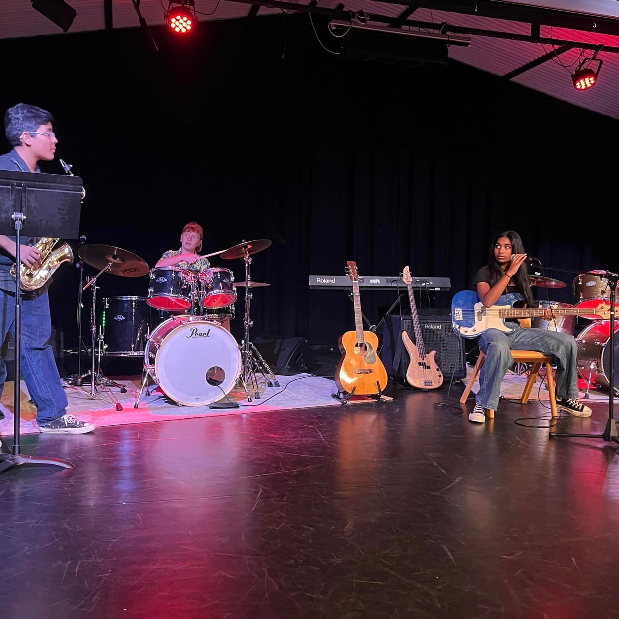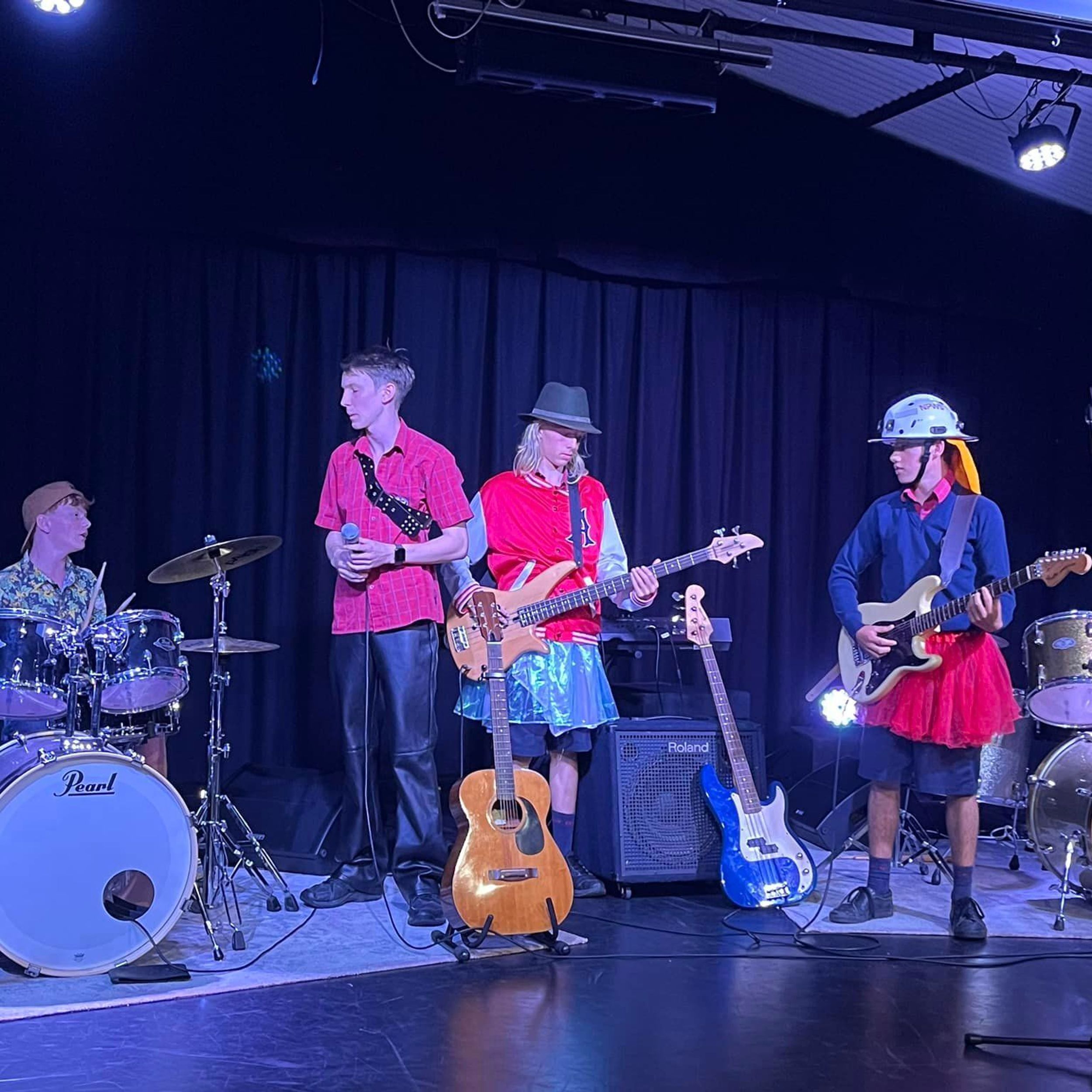 On Friday 6th September, BDC held our first Battle of the Bands competition in the College theatre. We had 8 bands enter with students ranging from Primary through to Year 11 covering a range of styles of rock. Most bands had been rehearsing for 3 terms and did an amazing job. Judges included BDC drum tutor Mr Abe Camden, Head of Colemans Music and Rockfest co-ordinator Mr Luc Travers and Head of Faculty Ms Rebecca Day. The judges were blown away by the talent. First prize which included a recording session at Grow the Music studios in Toormina went to the Secondary Rock Band.