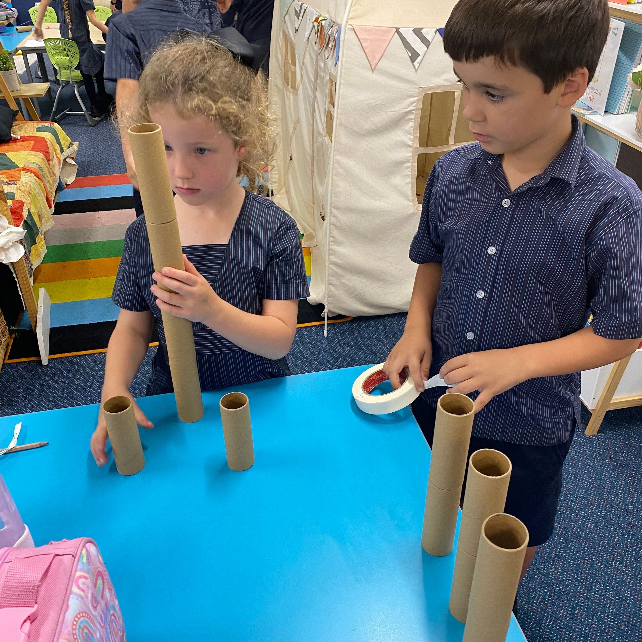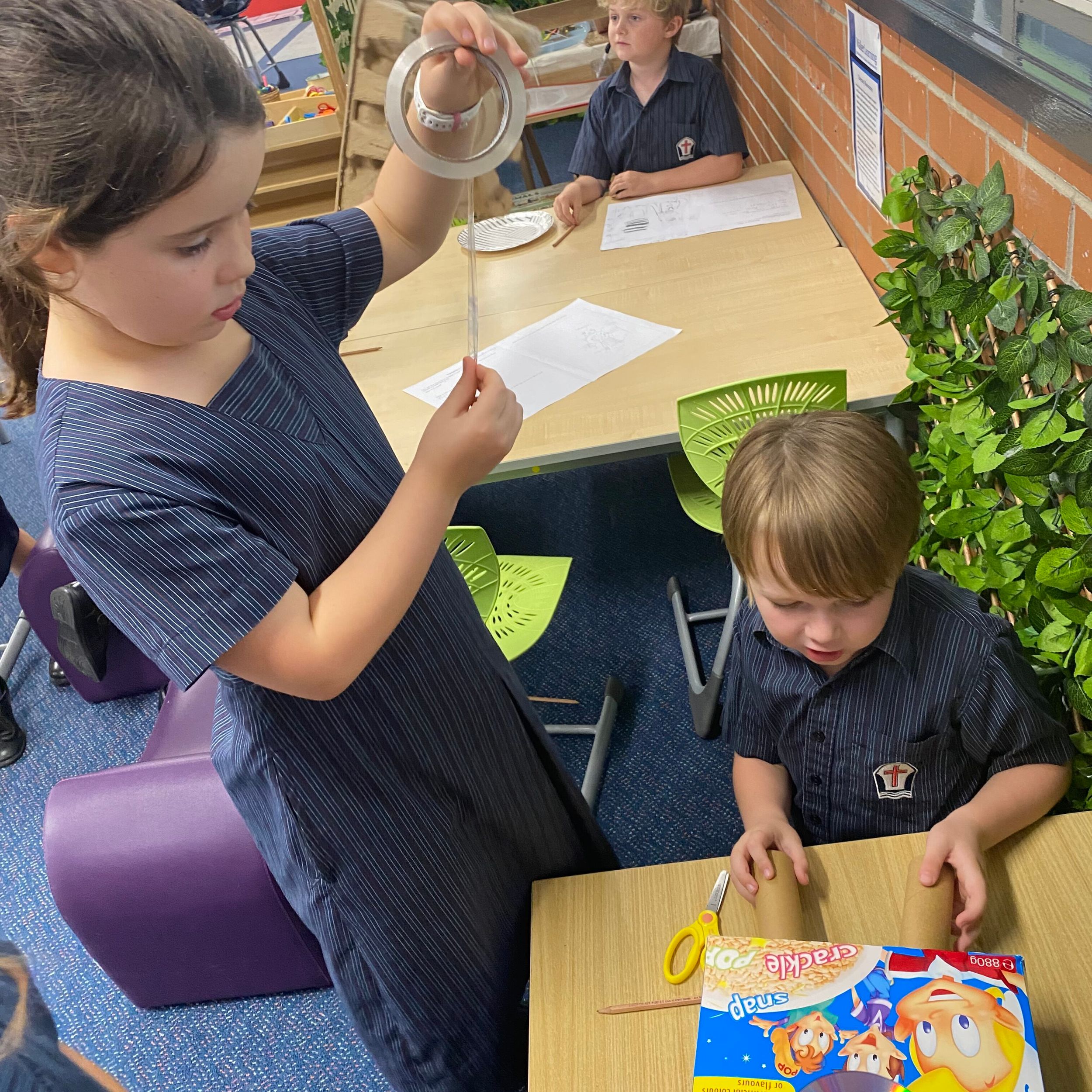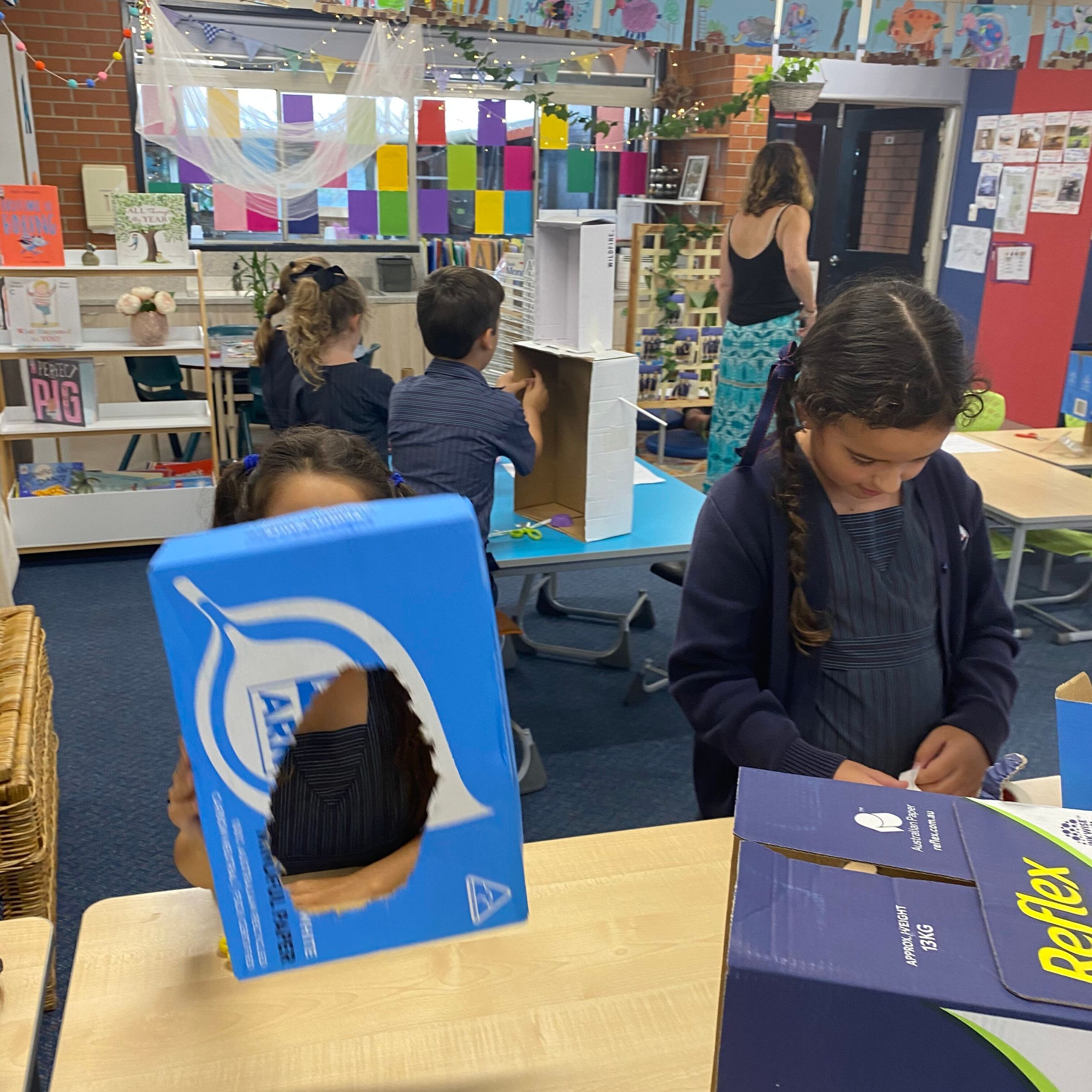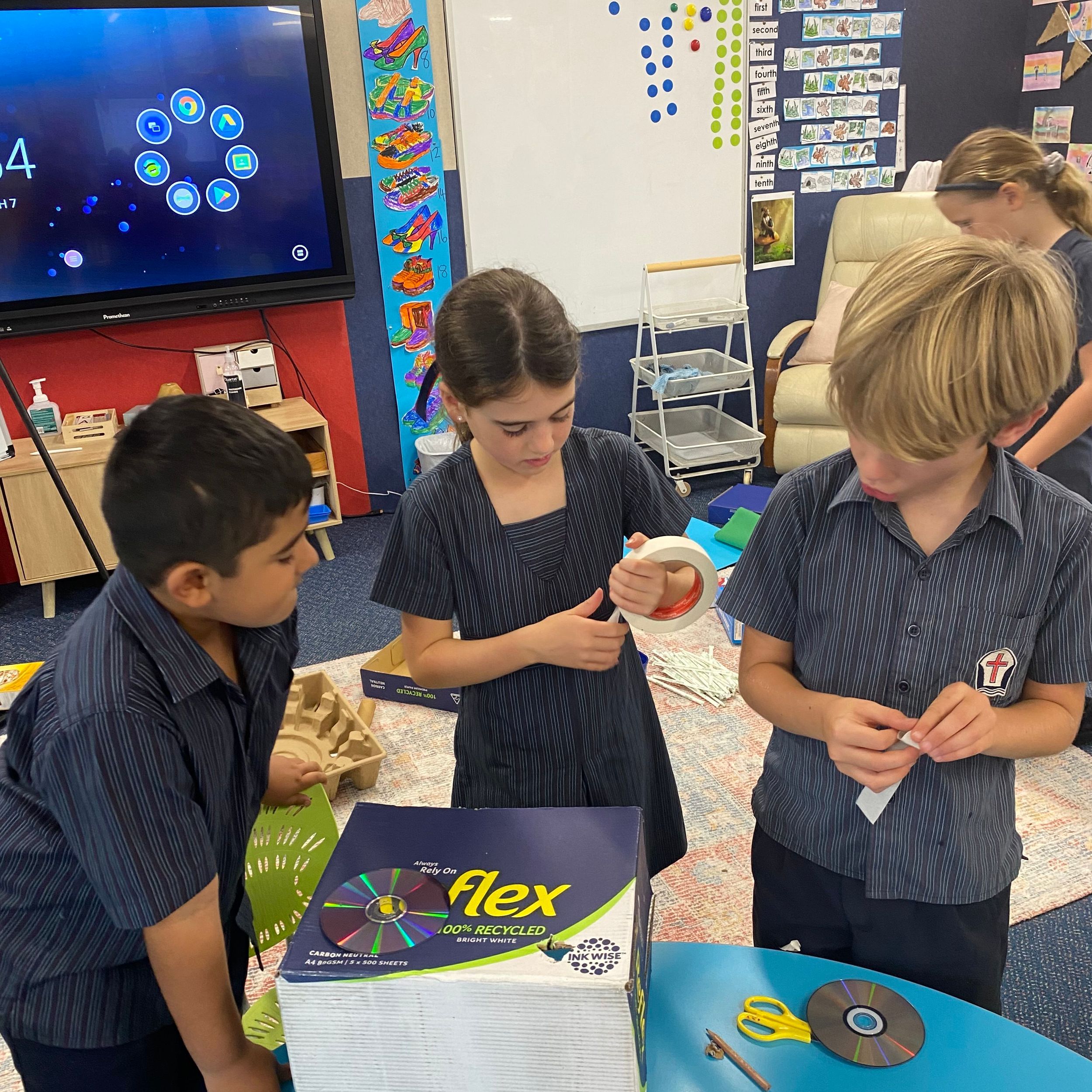 This term in the ELC we have been learning about change and innovation in Science lessons. We have worked in our buddy groups to design and make a robot to assist in different rooms of our houses. We had to work cooperatively and compromise whilst we were working on this project. We modified our design to improve it and also during the construction stage. It was a valuable and enjoyable experience for us all.