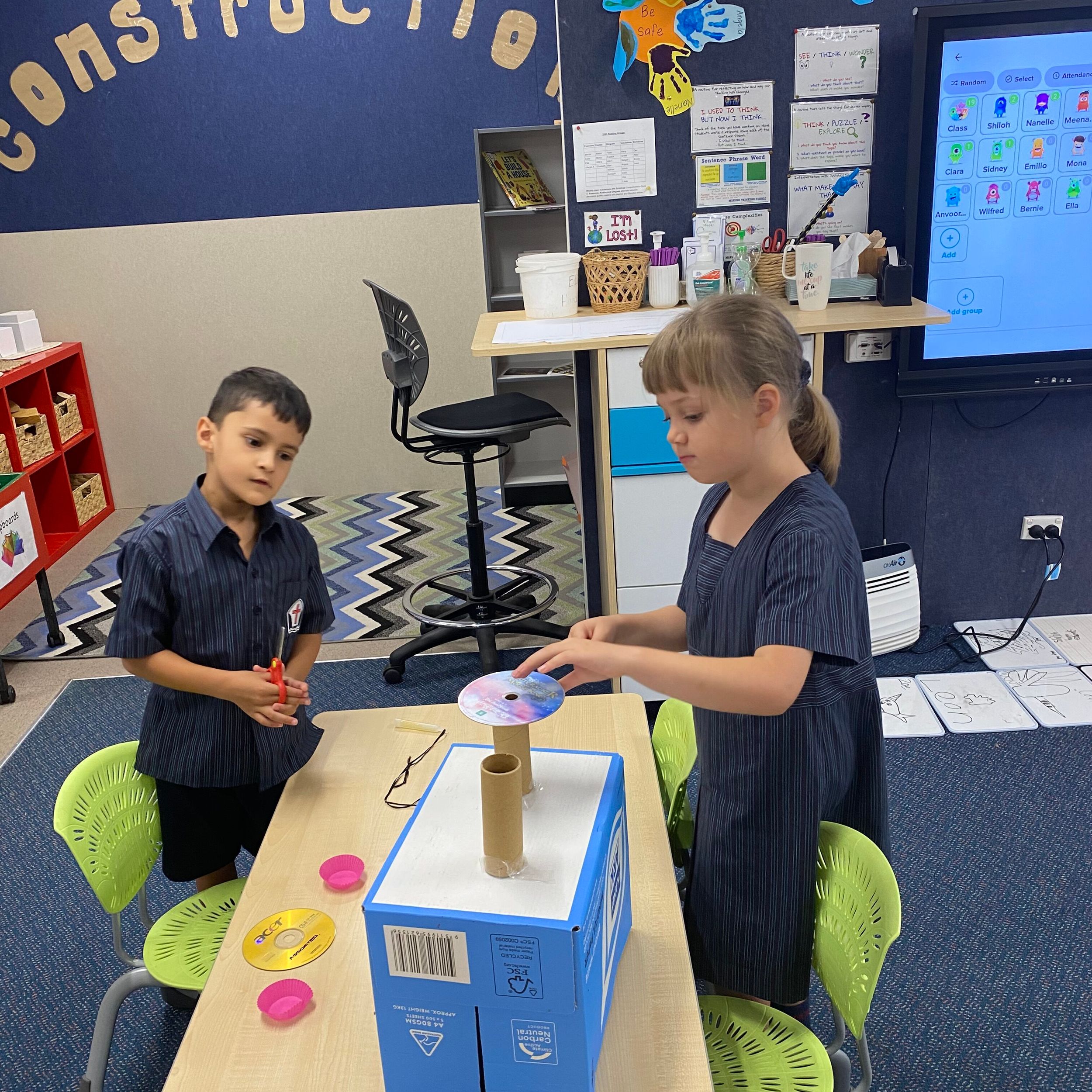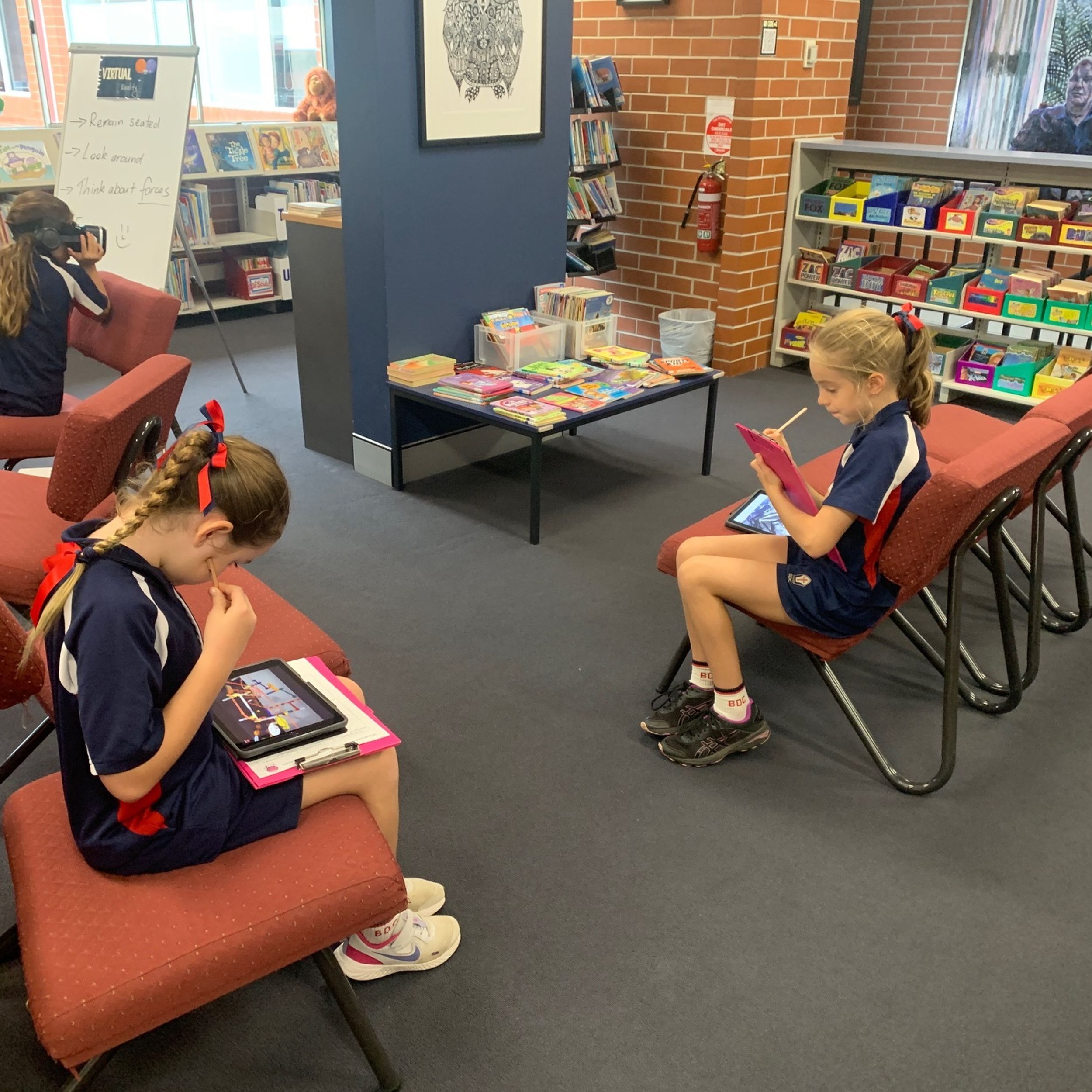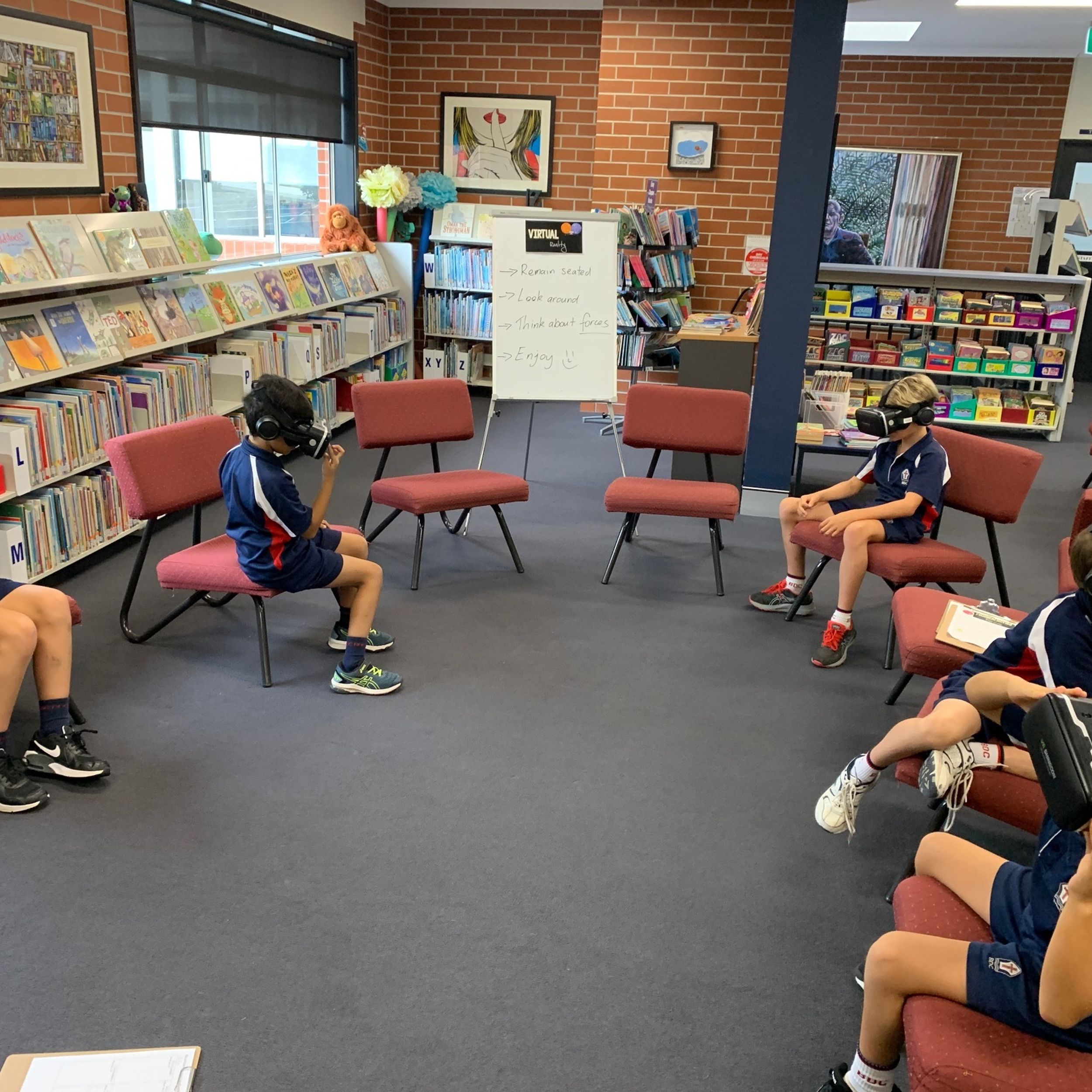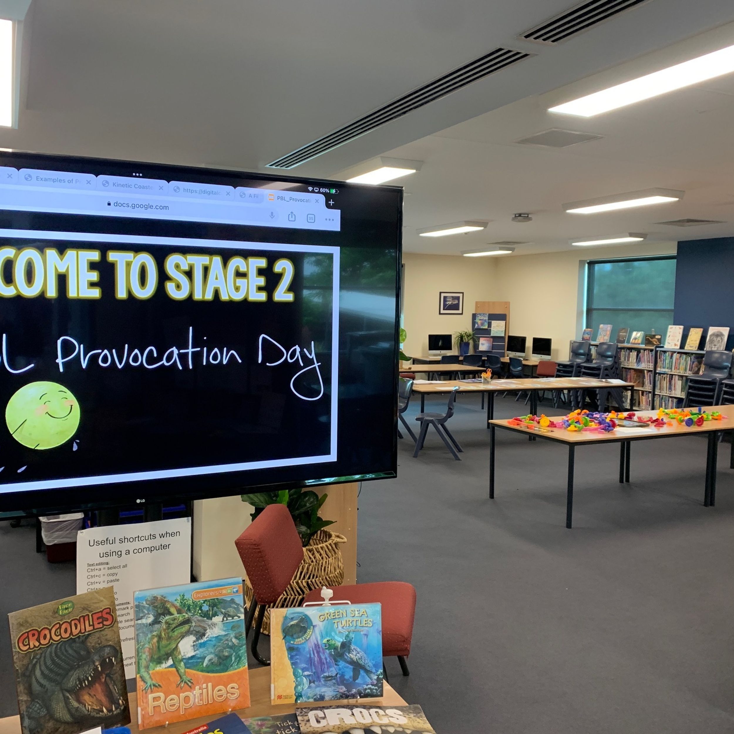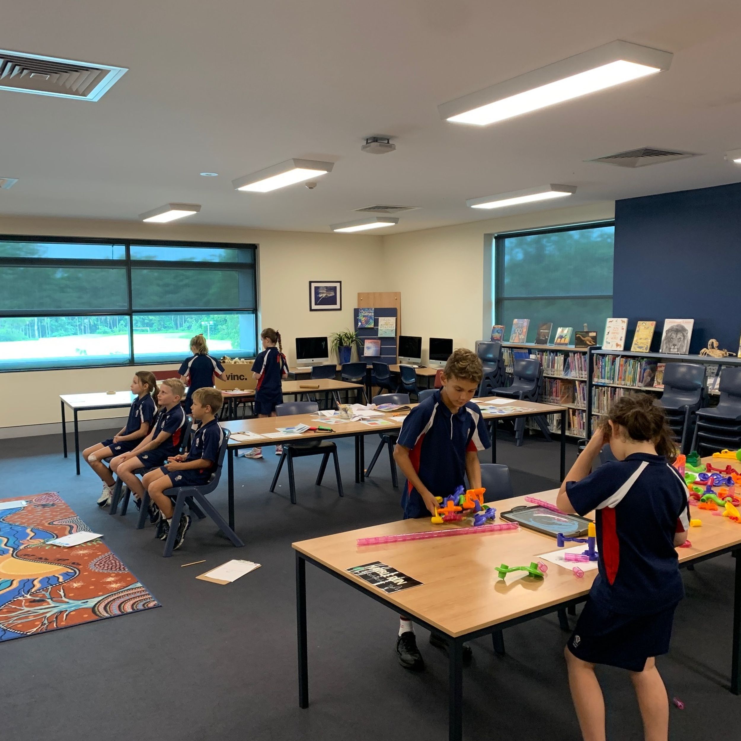There were multiple activities and technologies set up across the Primary Library space designed to provoke interest and open discussion about what the project could involve and what knowledge of forces would be required.