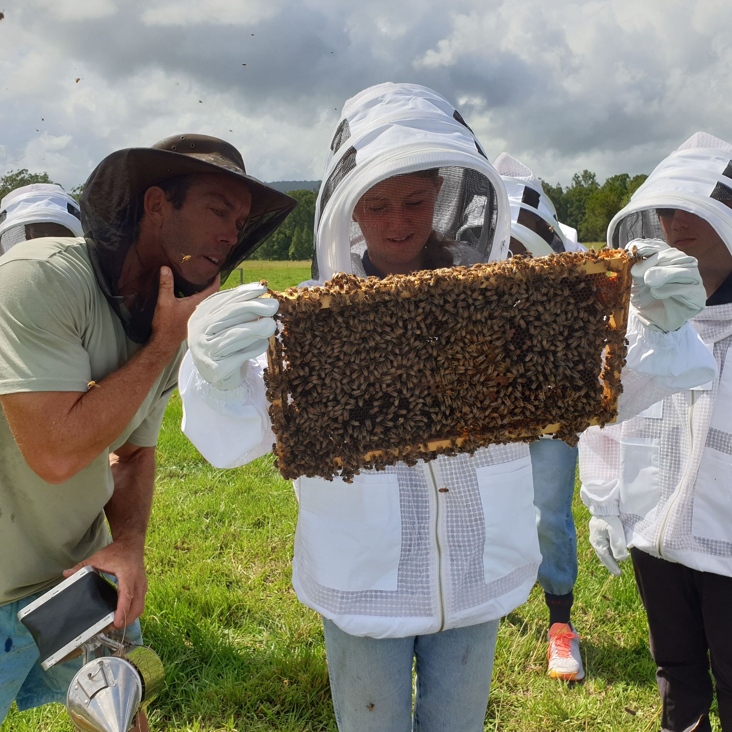 The Contemporary Agriculture world option class had a great first trip out to the BDC farm, 'Farnworth'. It was a treat to have Ted Clarke (the gentleman who previously owned and donated the property), Neil Griffin (local Apiarist) and Michael Hayhoe (BDC Farm manager), join us for the morning's events. The students were able to get a feel for the property's location and topography and got stuck into some hands-on experiences with the honeybees, beef cattle and the vegetable gardens.
