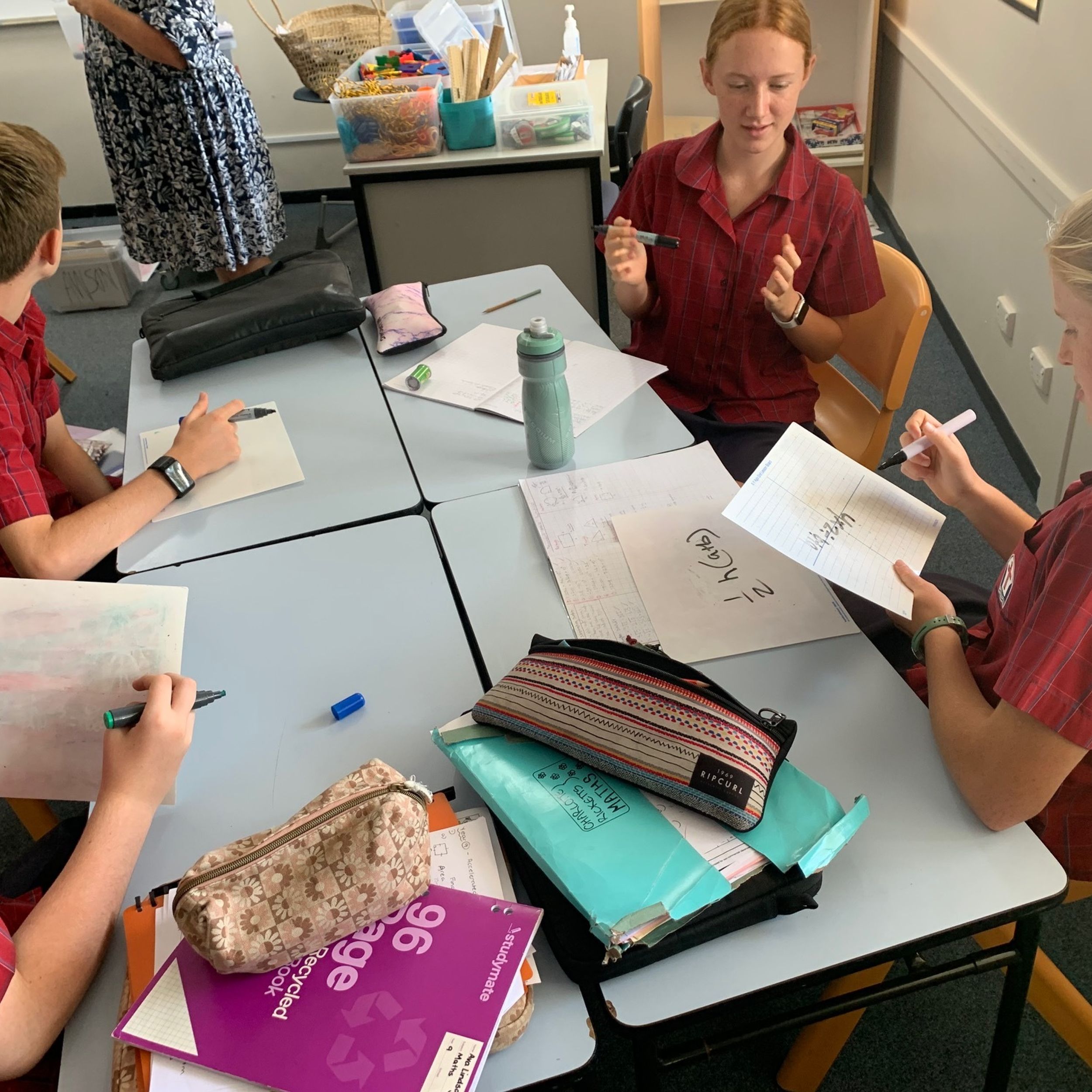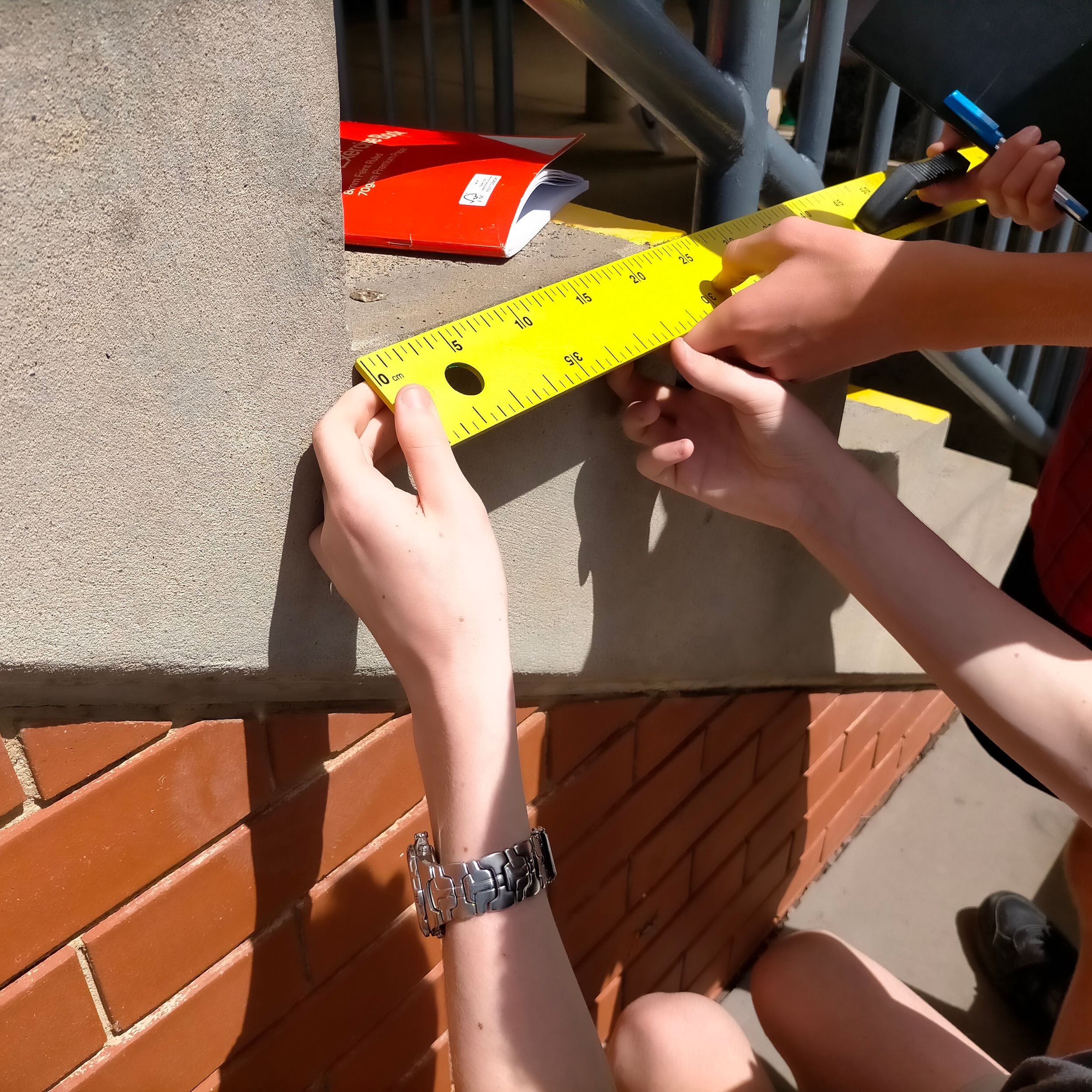 From there the students discovered triangles in the school surroundings and proved whether the triangles they observed were right-angled or not. Applying their knowledge in teams they were then able to solve problems delivered as a scavenger hunt. Two straight hours of Pythagoras' Theorem and they were fully engaged and invested the whole time, great work Year 9!