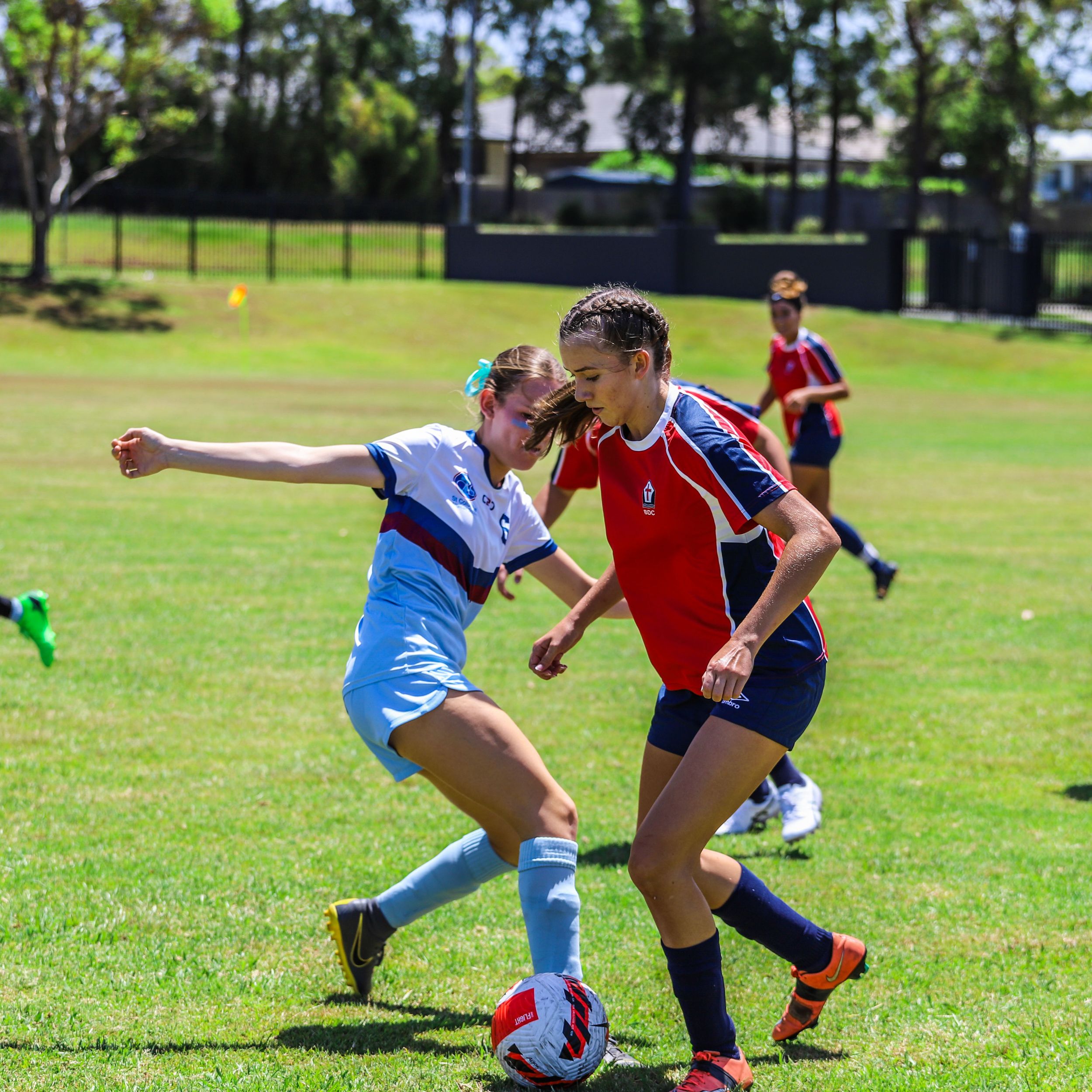 As the day wore on, the heat began to take its toll. Players from all teams had to dig deep to find the reserves of energy needed. The Red Team progressed through to the Cup Finals, while the Blue Team placed in the Bowl Finals. Both teams came up against tough, powerful opponents and well-drilled, cohesive teams. Falling just short of making the grand finals for their divisions, all players kept playing hard for themselves and for each other, right up until the final hooter.