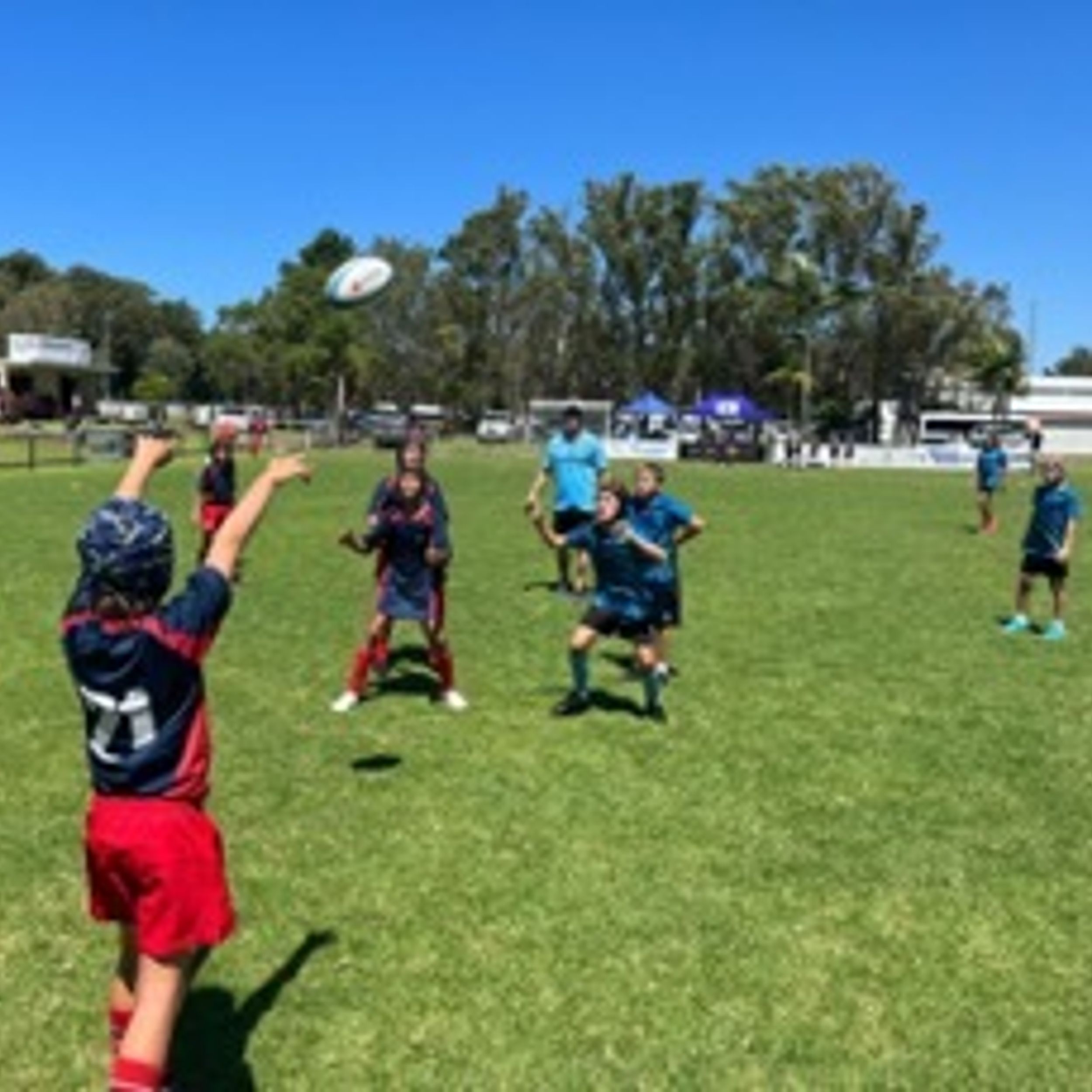 Under blue skies and a bright, hot, Autumn sun, the BDC Primary Rugby Sevens teams arrived at Rex Hardaker Oval ready for action. Both teams, BDC Red and BDC Blue completed their warm-ups with purpose and precision. The early matches saw some strong attacks and determined defense, with the Red Team winning their first two matches.