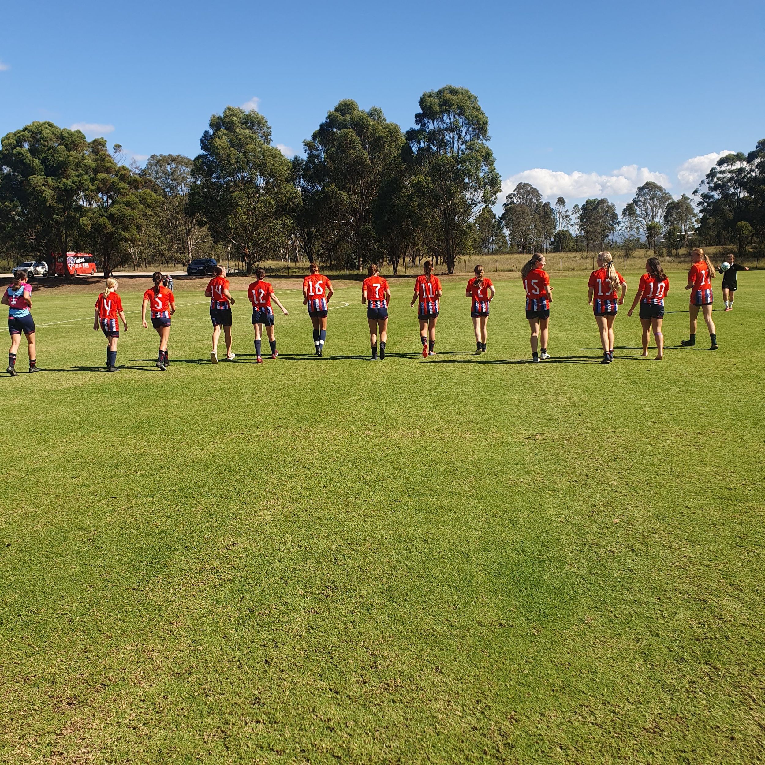 The first half saw Mamre score 2 early goals while we adjusted to the pace and skill level of the opposition; we then lifted and were super competitive for the next 20 mins or so until they scored 2 quick goals at about the 25 min mark. We scored a great goal from a long throw in from Charli, headed on by Layla and a sharp finish by Phoebe. They got another good individual goal just before half time taking the score to 5-1 at halftime.