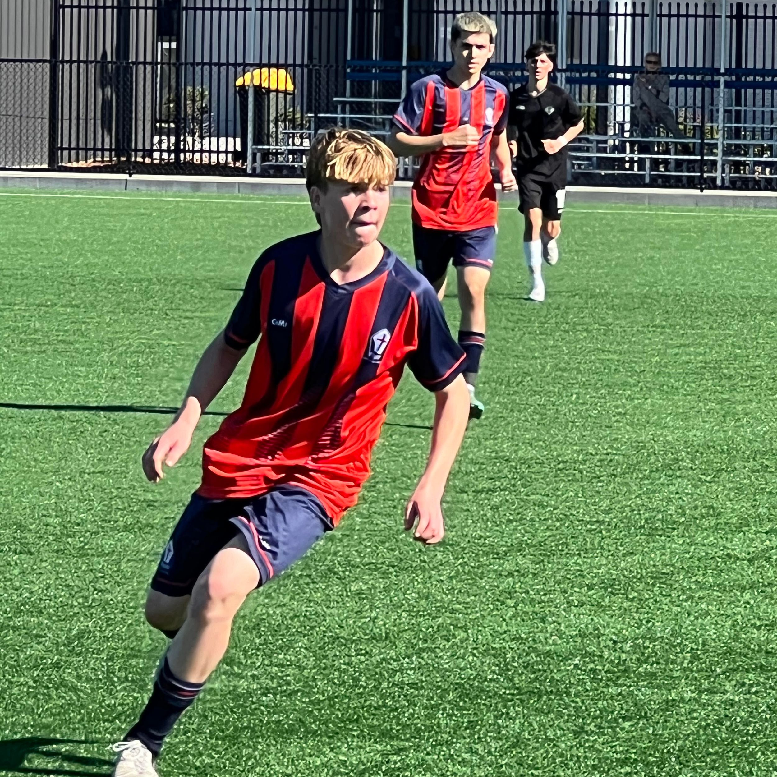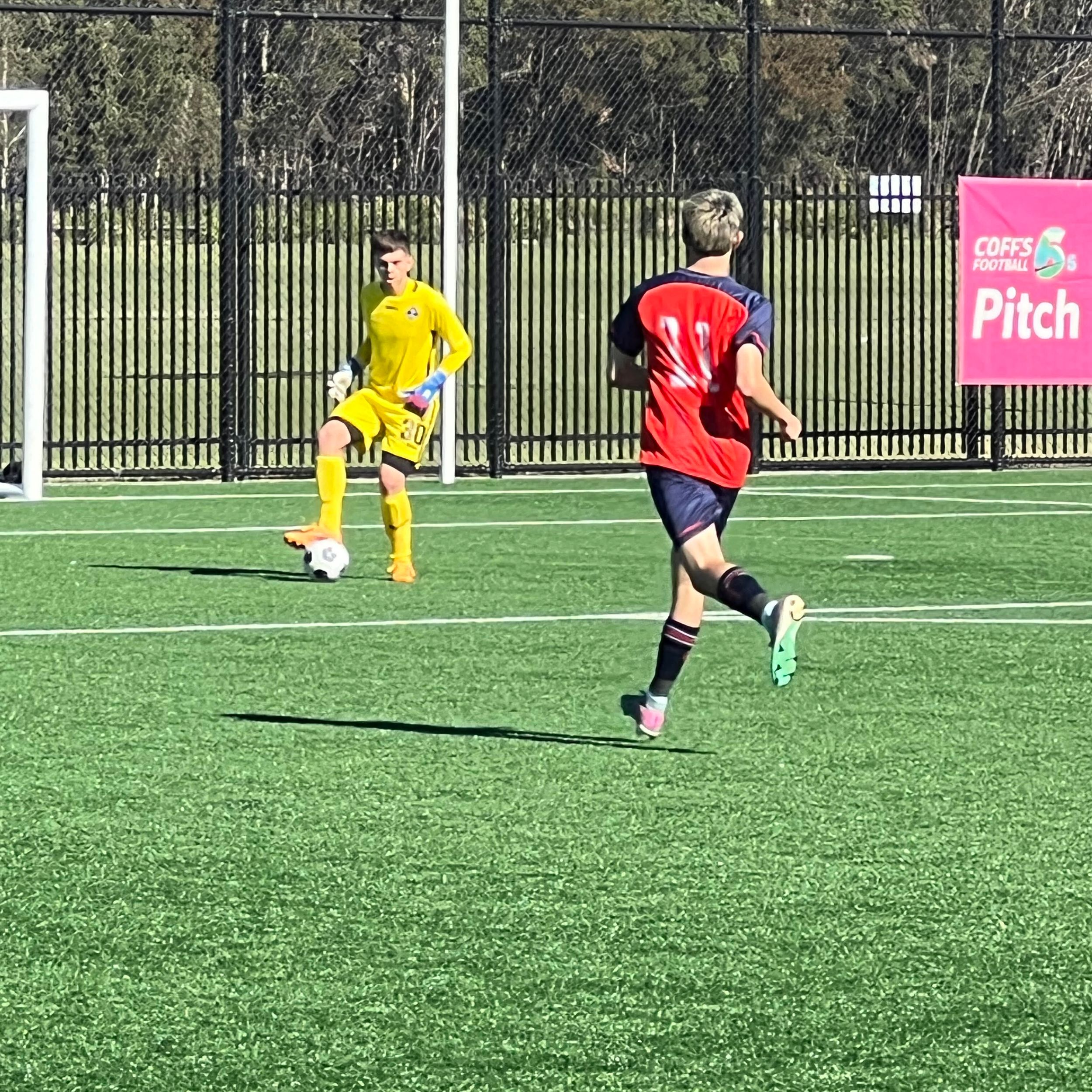 After defeating Trinity Grammar in the quarter-final game, the open boys team took on Mamre Anglican School who travelled to Coffs Synthetics for the semi-final. Unfortunately on the weekend prior Anderson Haldon injured himself to be unavailable for this important game. The game started and both teams had good patches. Mamre took the lead with a good finish 20 minutes into the first half. Shortly after this goal, Kai Veneziano made an incredible run down the left side, beating multiple players, getting into the penalty box and drawing a foul. Logan Sambrook took a well-placed penalty to make the score 1-1 at halftime.
