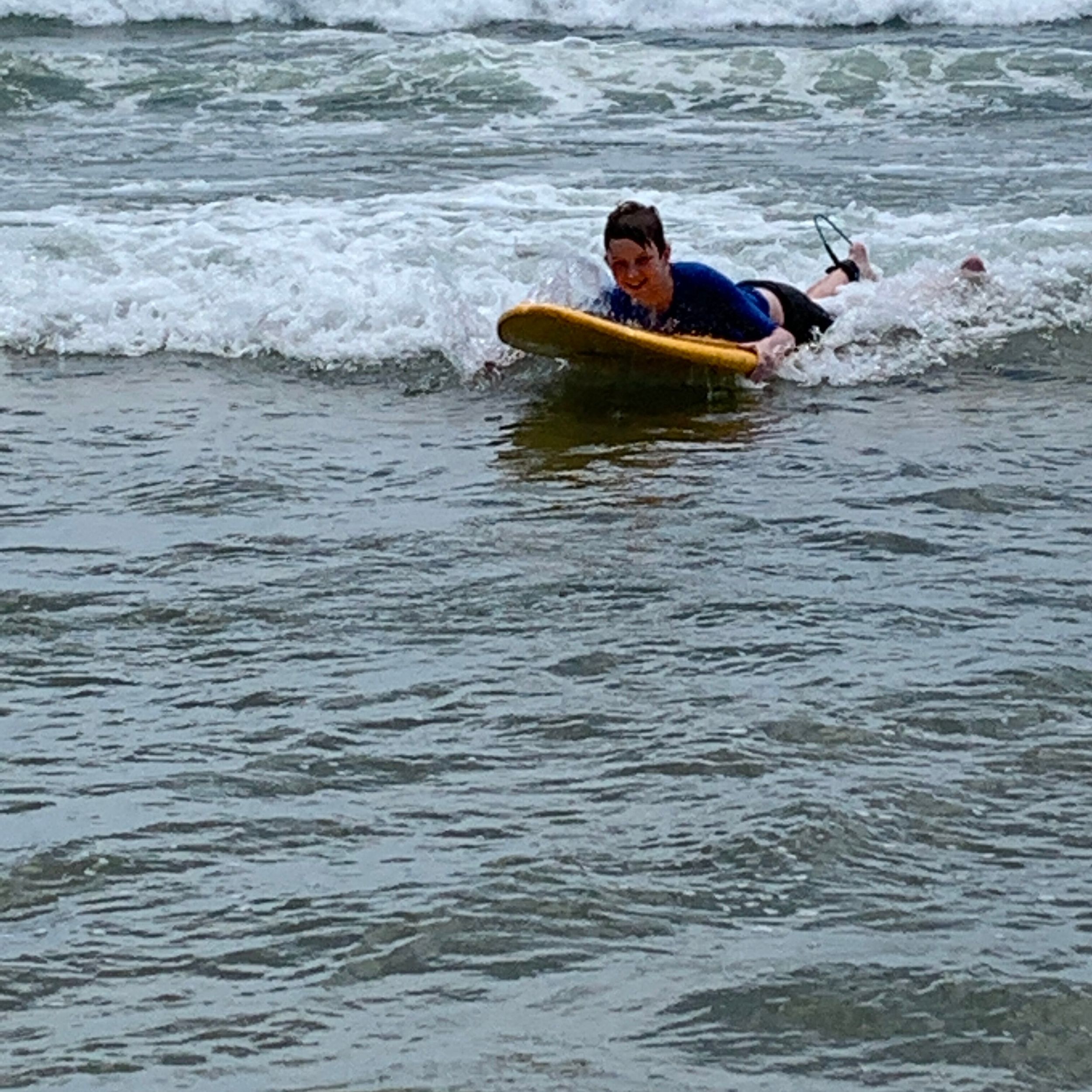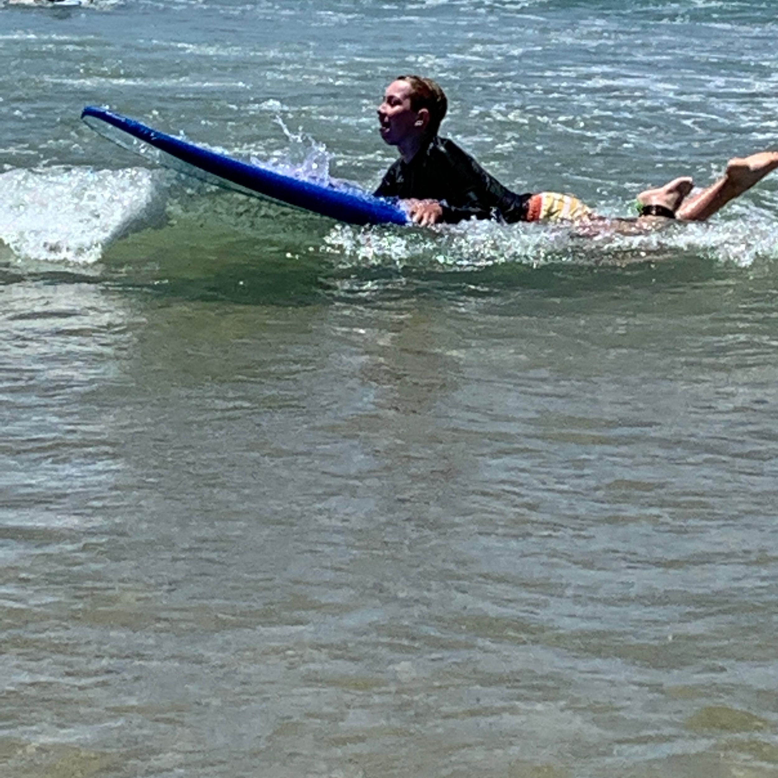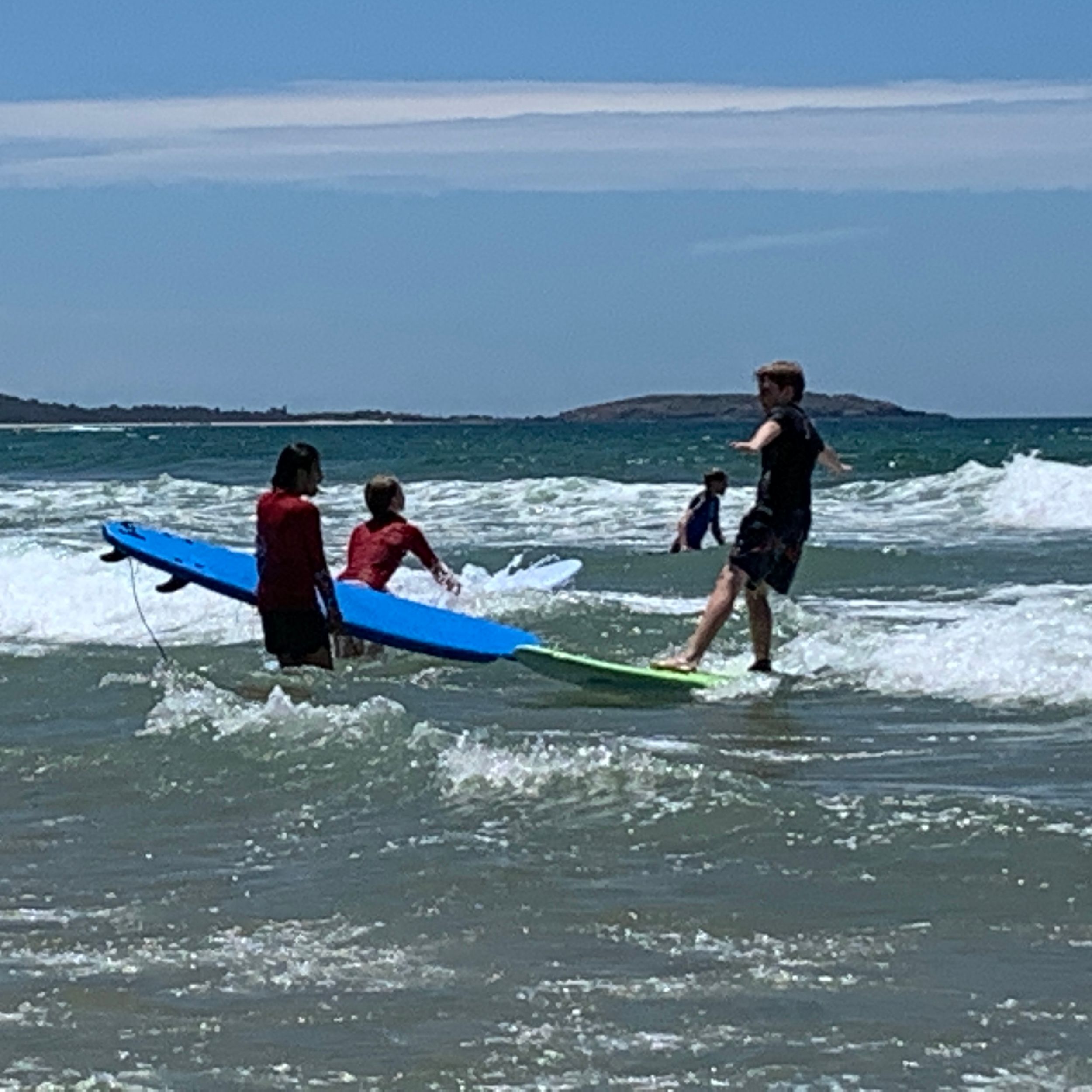 Last week students in Year 6 went for a surf day at Sawtell Beach. When we got there, we were told what was going to happen and the expectations. Soon after that we met the surf instructors and got ready to go in the water just for fun. Once we had enough fun it was time for recess. Most of us were just building sandcastles. After that, we were running around the beach and swam. Then we got split up into class groups. 6M got to surf first while 6C were learning about CPR and DRSABCD. 6M were getting ready to go in the water and learn the basics. Next 6M got the best waves and chose one partner to do the fun activities; like pretending one of us was drowning and the other getting a board and saving us. I'm pretty sure that the Year 10s who came enjoyed it. We then had to swap and 6M were learning CPR and DRSABCD and 6C were surfing. Next, we played beach games. Eventually we got to go in the water again. Then we had the choice to surf or go and get ready for lunch. We all got to surf and then packed up to get ready for the bus to come pick us up and to have lunch. We also got to go to the Kiosk for lunch if we wanted to. Finally, the bus came, and we ended up at school. “It was a fun time.”