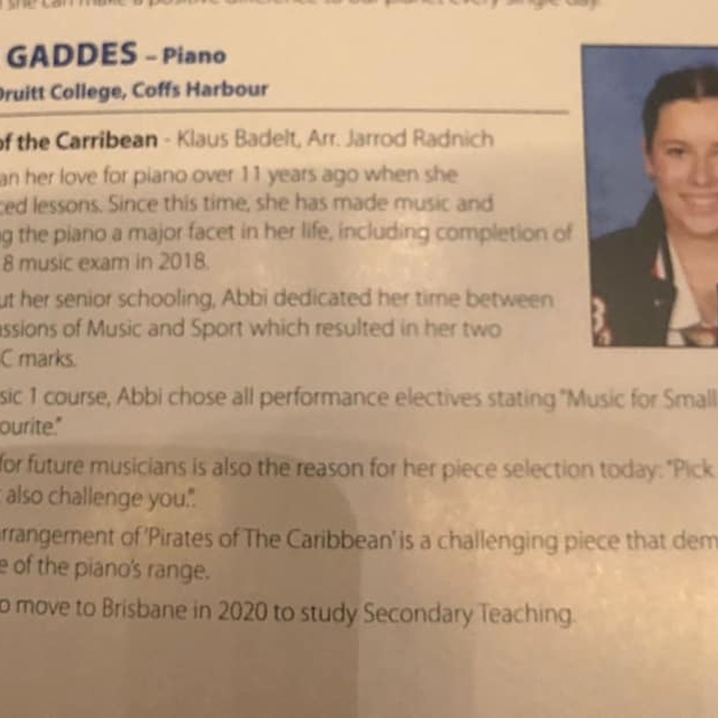 It is the end of Week 4 already and the busyness of the school year is in full swing. I wish to thank the students who have already extended the hand of friendship to our 170 new students across the campus. The new students are meshing well into the BDC way and already taking a number of opportunities to extend themselves. I had the pleasure last week to drive to Port Macquarie with the senior music students to see Abbi Gaddes, a recent graduate, perform her HSC piece 'the Pirates of the Carribean'. Abbi represented the college well and our current students witnessed the calibre of performance required to excel at this level.